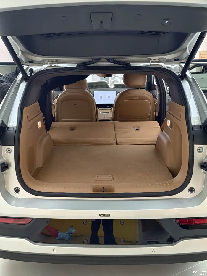 实测躺下很宽敞,成年人伸直腿毫无压力,平整度不错,没有明显台阶硌得慌。常规后备箱空间日常够用,放倒第二排后拓展空间特别实用,露营装备、大件行李都能塞下。