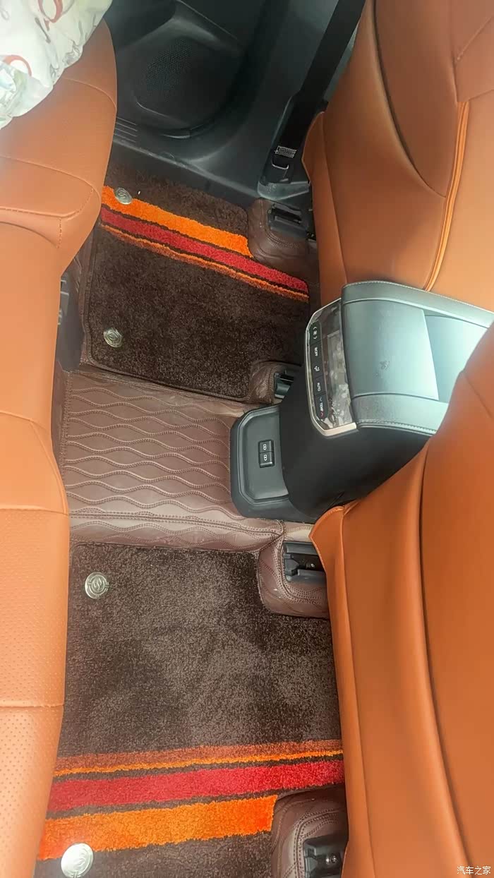 3.内饰感受:内饰的话全部采用的纺皮座椅,但以前的是灰色的座椅让我的大汉有一点缺少豪华的感觉,我便把他套上了一个皮质的座椅套我选的是橘红色的这看起来就高档很多了,整个座椅很软但是包裹性很强,坐上去很舒服靠背的地方也是能把你的背部给包裹住,让你想休息的时候往后面一躺就觉得自己很充实很放心的感觉,我装了氛围灯,还是变色的这个在晚上看起来就很舒服,总体也看起来来豪华感十足,出去面子能提升不少!