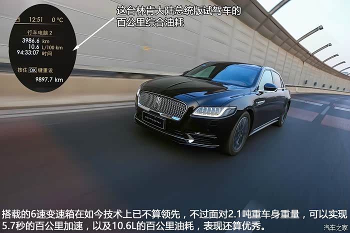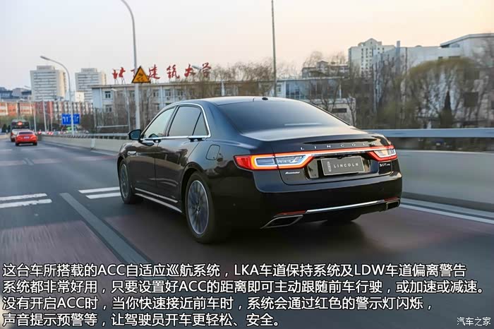 先来总的聊聊三天下来的感受,试驾车为林肯大陆的总统版,已经是目前国内在售大陆系列的最高配置。不过在我看来这台大陆其实最吸引人的地方却是在前排(主要是驾驶位),首先动力:这台3.0T的发动机可以提供378匹的最大马力和570牛·米的最大扭矩,全油门到底时,能把车内乘客措不及防的紧紧的按在靠背上,让人充满驾驶的欲望。其次功能性配置:这台车前排座椅拥有多达30项的调节,能让驾驶者很轻松的调整出自己最喜欢的座椅贴合方式(当然还具有加热、通风、按摩等功能)。再次安全性配置:这台车所搭载的ACC自适应巡航系统,LKA车道保持系统及LDW车道偏离警告系统都非常好用,只要设置好ACC的距离即可主动跟随前车行驶,或加速或减速。没有开启ACC时,当你快速接近前车时,系统会通过红色的警示灯闪烁,声音提示预警等,让驾驶员开车更轻松、安全。