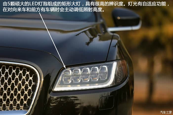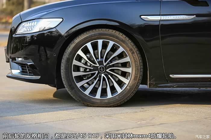 初见这台林肯大陆,也绝对算的上大气。黑色的车身颜色,搭配镀铬的中网,林肯十字架造型的车标在阳光下熠熠闪光,巨大的视觉反差,让人觉得庄重。