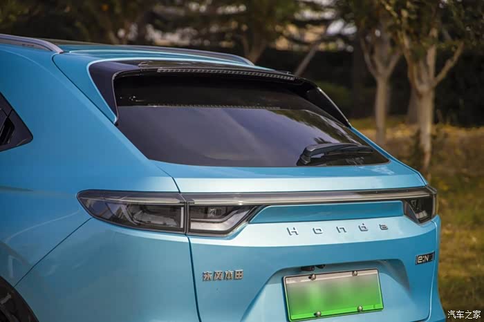 同样的,e:NS1将轮圈设计成密辐条式,豪华与运动兼顾。e:NS1将时尚感延续到了尾部,整个车尾造型凹凸有致,贯穿式尾灯是一大亮点,下包围部分还有亮黑色饰板,同样是为了突出新潮感。