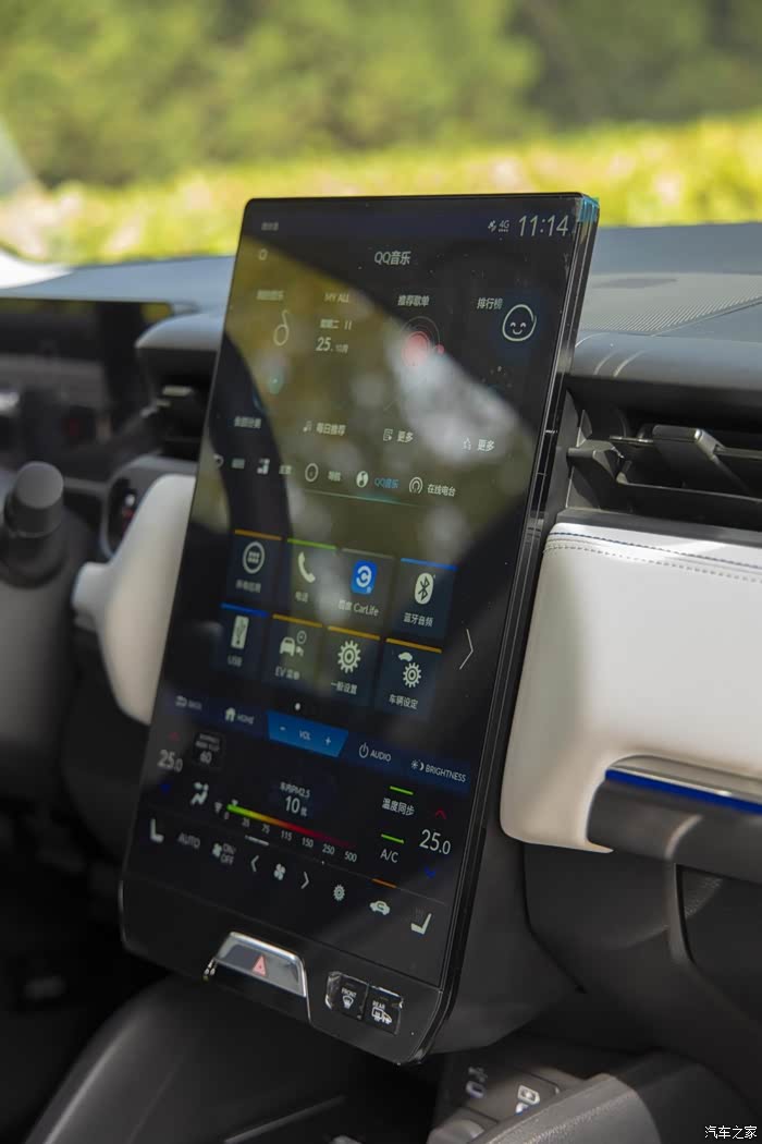 内饰以一块小尺寸液晶仪表和大尺寸竖置中控屏为主体,中控屏的操作比较顺滑,内置有不少的功能,不仅有了科技感,最重要的是不影响驾驶员的行车注意力。对于内饰,很多车型要么是以屏幕为主,要么是以按键为主,而e:NS1是将这两种风格相结合,汲取屏幕的科技感和按键的实用性。比如中控屏周围、左侧空调出风口下方、水杯架周围都设计了实体按钮,与屏幕搭配起来使用更便捷。