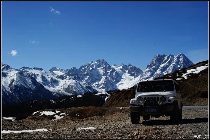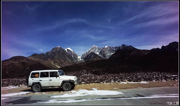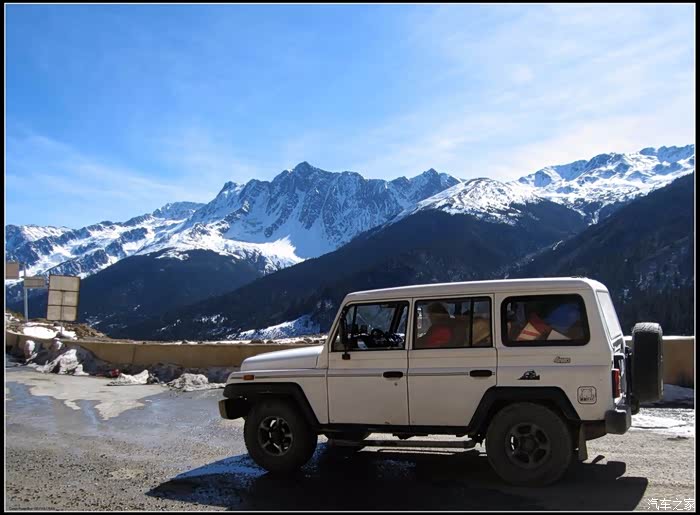 冬季的四姑娘山,游客稀少,偌大的停车场,只有我们一辆战旗在那里。