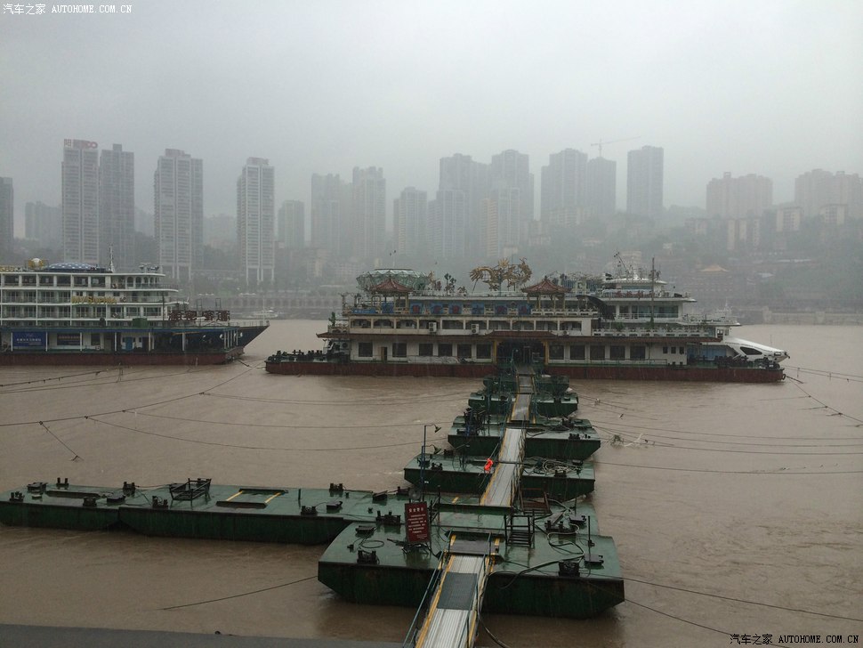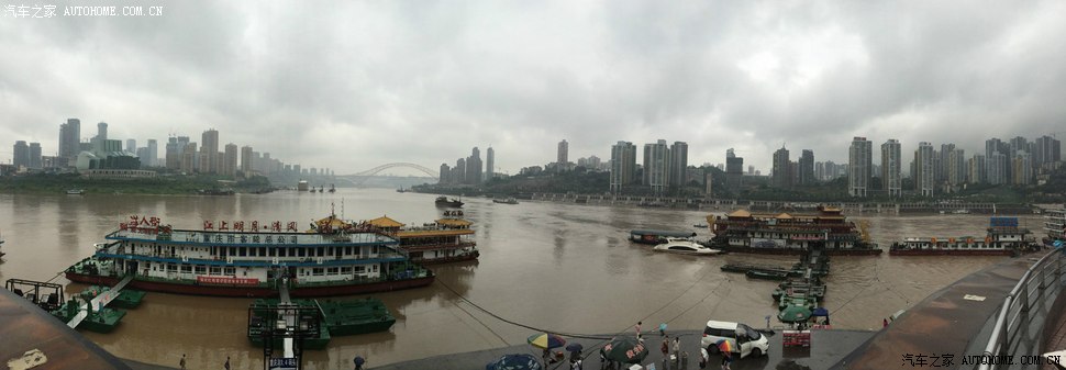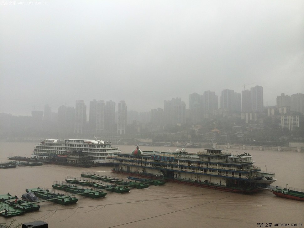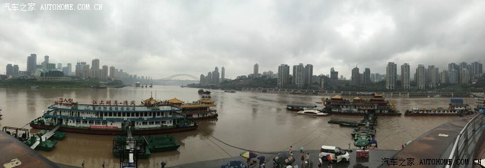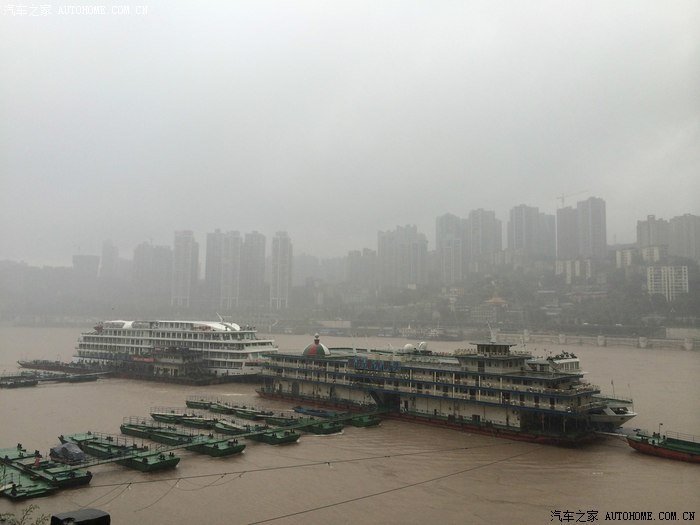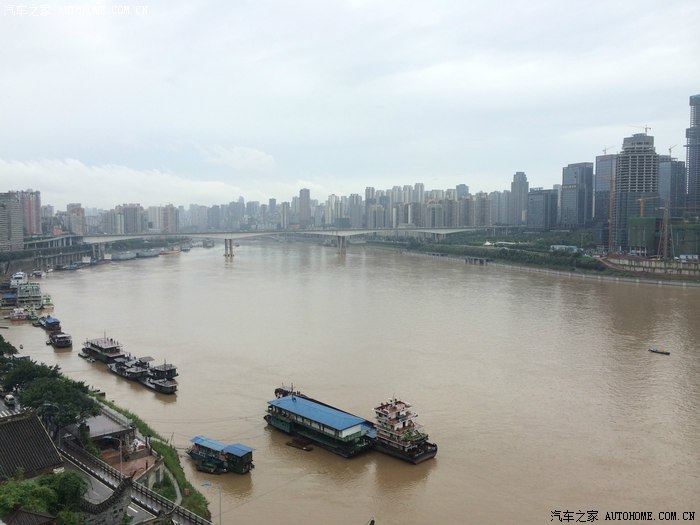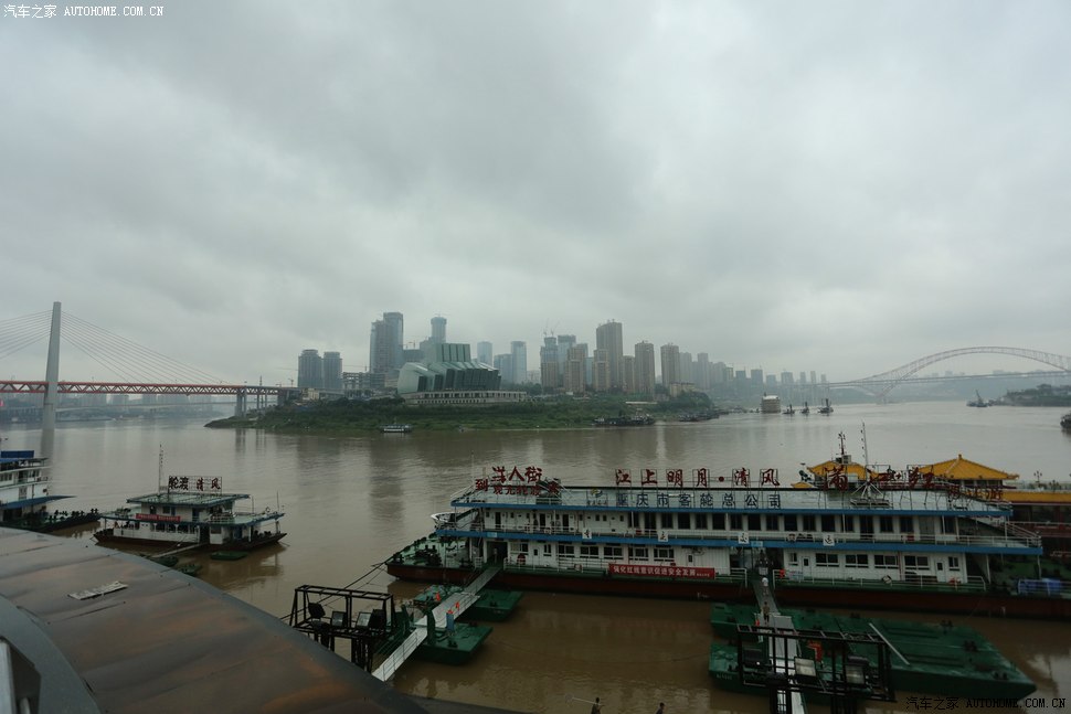 早餐后搭乘地铁1号线去往朝天门,体验了一把城市云霄飞车的感觉,从楼宇的半腰擦身而过,与高架桥上的汽车遥遥相望,远处可望到江水轮船,视野好极了!朝天门位于嘉陵江与长江的交汇处,是一座古老的码头,雨中的江面雾气氤氲,遥望黄黄的江水,视野开阔宏大,此岸是一艘艘停泊在码头的大轮船,对岸是一栋栋现代的摩天高楼。
