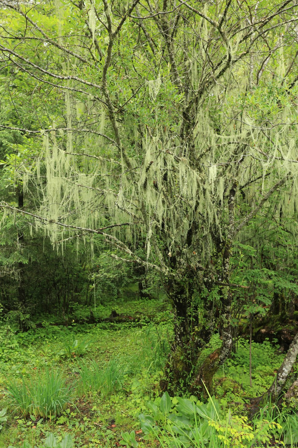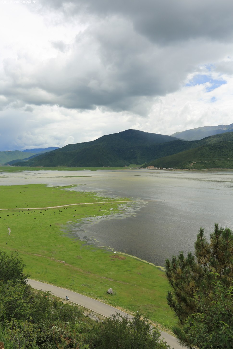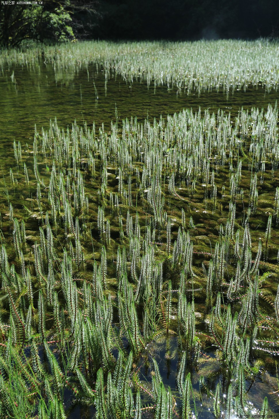 阴天多云,影响了景色。坐区间车按顺时针方向游览属都湖,弥里塘草场,碧塔海。属都湖上漂浮着草甸,一丛丛。沿属都湖栈道走到观景台,一边是湖水,一边是原始森林,原始森林里长有各种珍贵植物和动物,尤以水杉居多,水杉是浅根系植物,由于被湖水不断侵蚀,土地松动,所以很多水杉倒在森林或湖中,露出了巨大的根系。