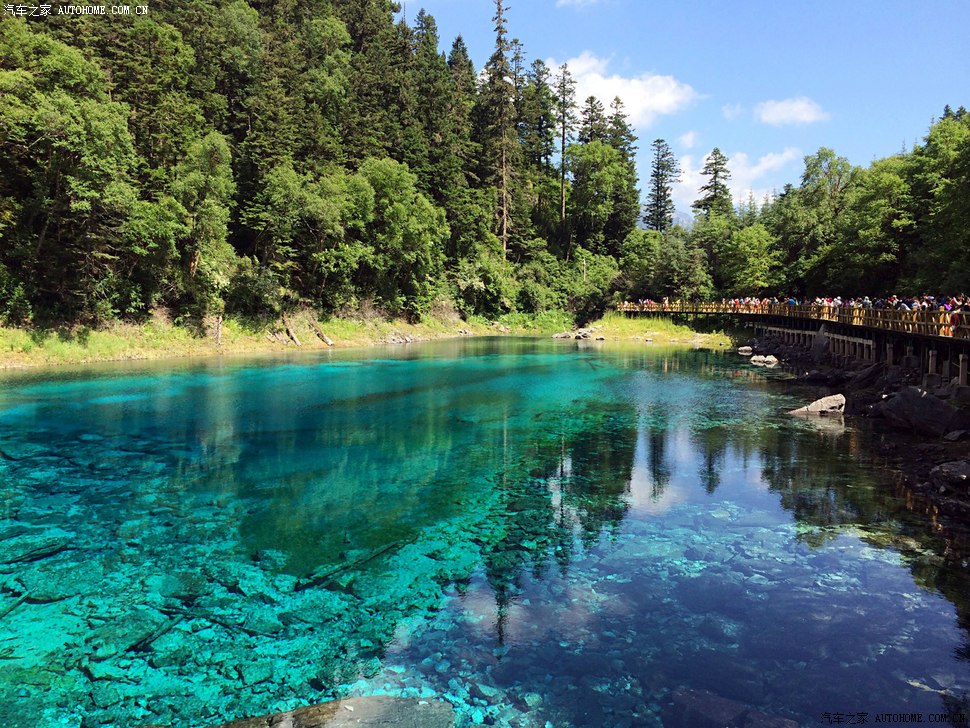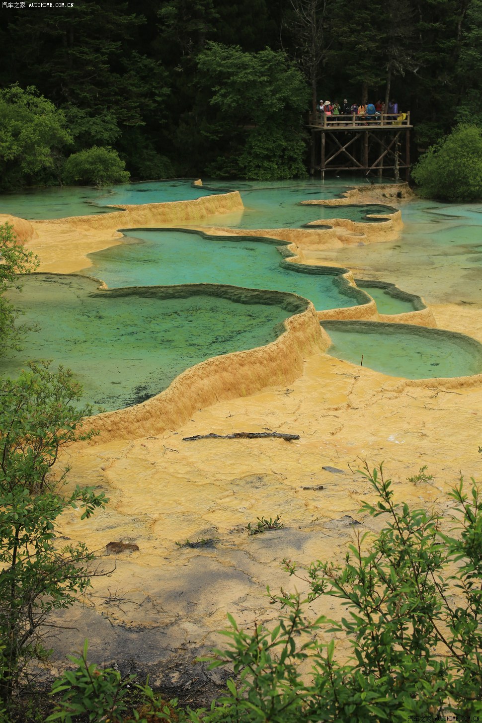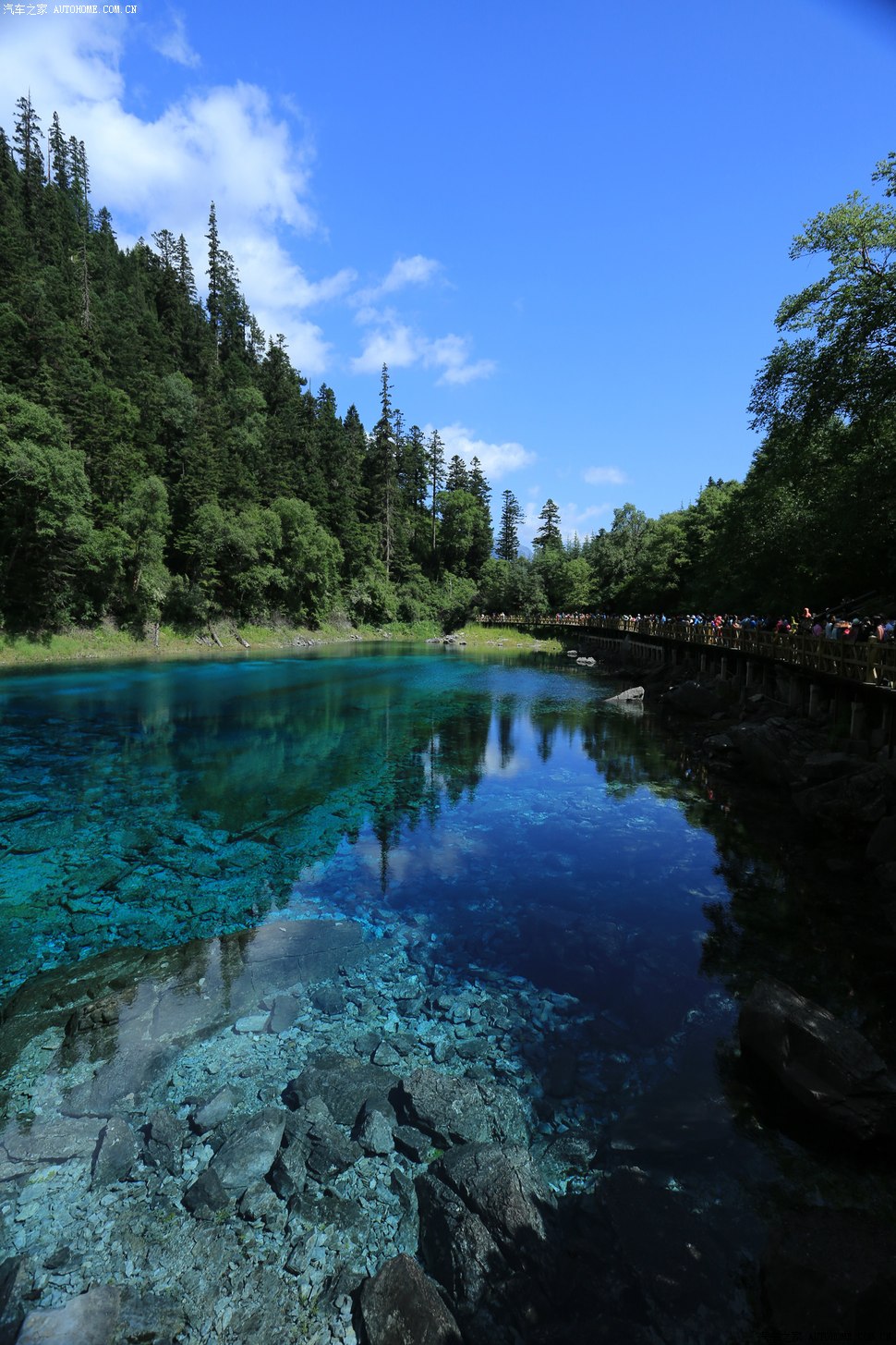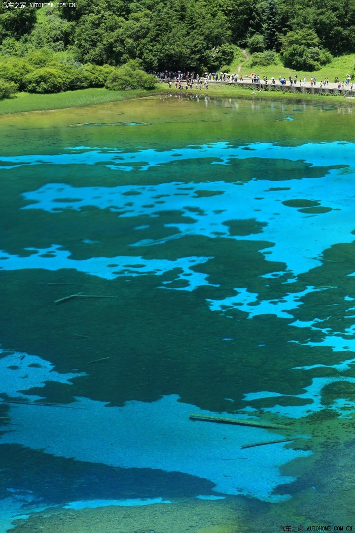 从长海步行一条长长的栈道便是五彩池,面积不大,但人气却是很旺,前行、拍照都十分不易,数了下,一汪湖水里主要呈现出蓝,绿,黄三色,犹以蓝,绿两色为多,深浅变换,交融,组合成摄人心魄的多彩世界!