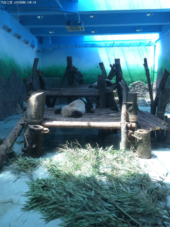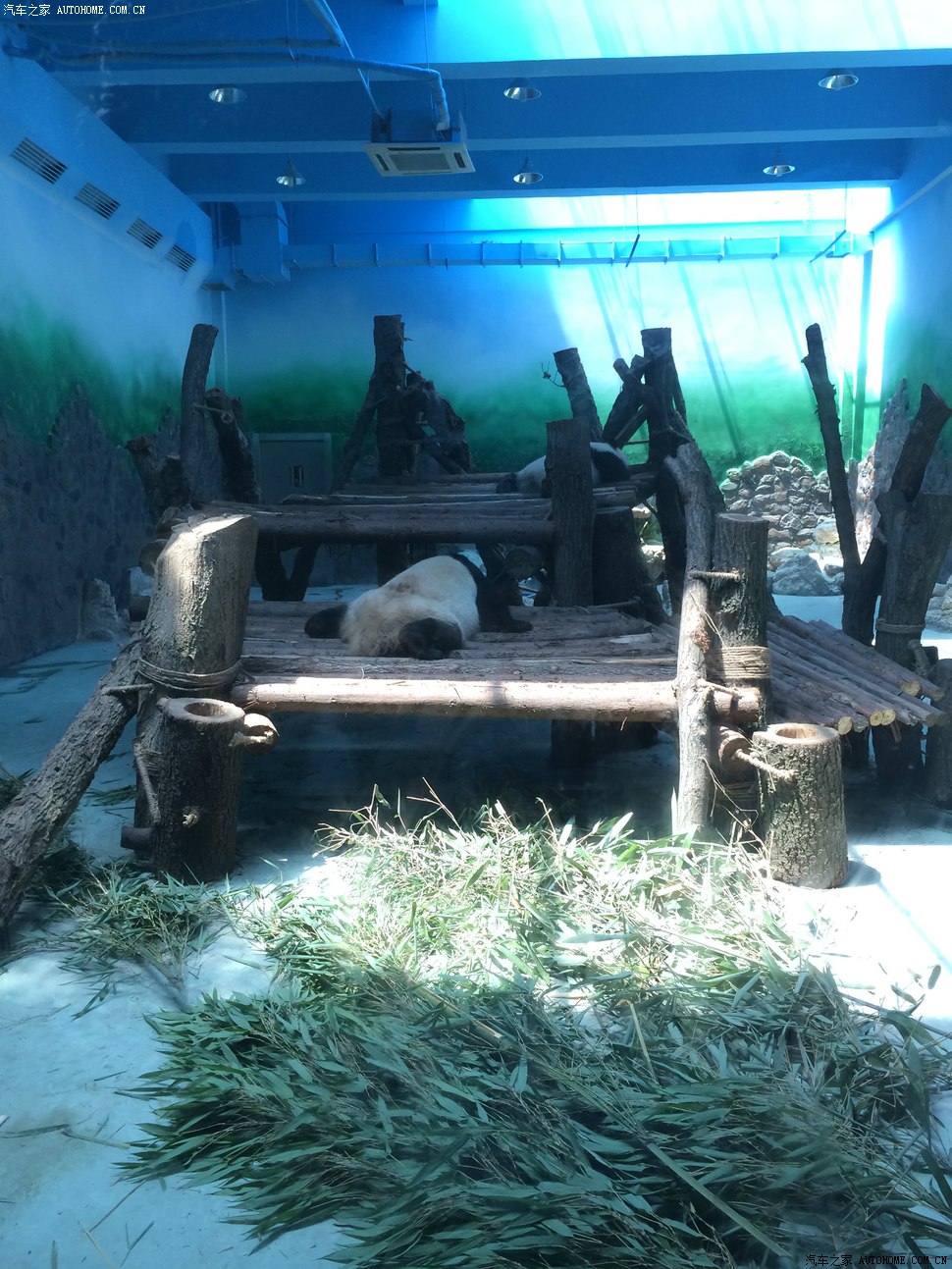 上午去4S店做四万五千公里保养,近一点钟才弄完,于是立即赶赴大熊猫基地看国宝,2点左右到达,今天天气炎热,走几步都满头大汗,熊猫怕热不怕冷,盛夏的下午熊猫们都躲进凉快的房子里纳凉睡觉去了。坐电瓶车到达大熊猫月亮产房,产房的保温箱里空荡荡,一只熊猫仔都没有,只能隔着玻璃墙看到两只正在睡觉的大熊猫,只好失望离开,去下一站:大熊猫太阳产房,里面人气很旺,看一眼熊猫真容还得排队,先是隔着玻璃看到几只关在铁栅栏中的成年大熊猫,有的懒懒的睡觉休息,有的调皮地爬铁栅栏,有的吃货在吃竹子,继续往前,几步之遥围着好几层人墙,凑过去看,原来是保温箱里的熊猫宝宝,很小一只,跟猫咪差不多大小,又有点像带黑眼圈的小猪仔,正闭着眼睛在趴着睡觉,丝毫不知道自己秒杀了多少菲林,吸引了多少注意力!如愿以偿地看到了熊猫宝宝,虽然只有一只,虽然还在睡觉,但总算看到了真容啦。太阳产房外的幼年熊猫活动区由于室外天气炎热,一只都没有看到…只看到了三只孔雀。按园区指示牌走,离太阳产房不远处就是小熊猫活动场所,“小熊猫”其实是小浣熊,并不是长得小只的熊猫,他们成年后也没有大熊猫大,感觉跟狐狸差不多大,安慰的是小熊猫并没有全部躲起来,在室外还是能看到不少,它们穿着厚厚的褐色皮毛,有着一条粗粗的毛茸茸的大尾巴,有的趴在树干或石头上睡觉,有的就比较活跃了,或者在攀爬用树干搭建的台子,或者几只在一起玩耍嬉戏,或者就趴在台子上悠然自得的成为大牌模特,十分可爱逗趣。 离开小熊猫活动场所,下一个目标就是去看成年大熊猫的别墅啦,虽然心中早有准备,但连续走了几个大熊猫别墅都没有看到还是很失望,成年大熊猫别墅给每一只熊猫建造了一个活动区域,里面植被茂盛,还有石头铸成的小房子,国宝的别墅果然面积跟配套都高大上。