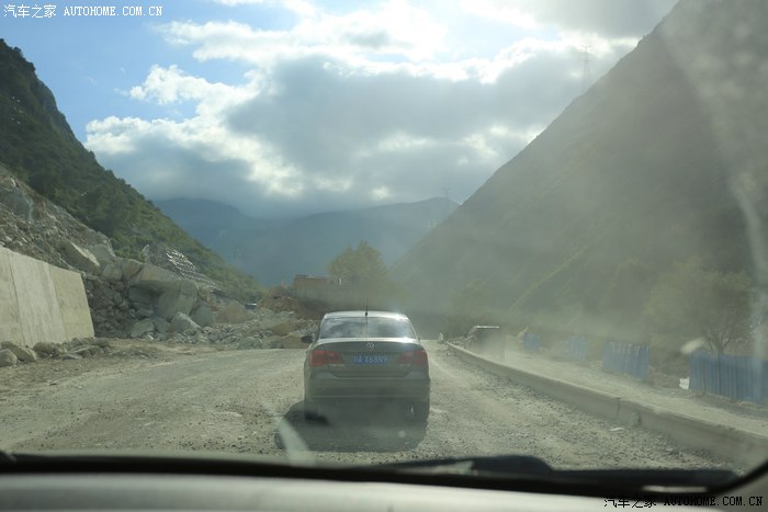 “跑马溜溜的山上,一朵溜溜的云哟……”一首康定情歌,让康定在我心中留下了美丽而浪漫的印象,可一天下来,九个小时,让我深深体会到前途是光明的,但道路是曲折的这句话的含义。在雅安下高速,走318国道,噩梦就开始了,车流量大,大货车特别多,双向两车道,遇上施工或车辆故障,只能排队通过。道路坑坑洼洼,有的地方的坑洼程度特别严重,得十分小心缓慢通过,速度完全跑不起来,偶尔加个速跑上一段,可别得意,因为随时路上就有“地雷”—超坑洼路面,简直是在训练反应能力,本来昏昏欲睡的两个人被这满处是坑的路震得贼精神了!