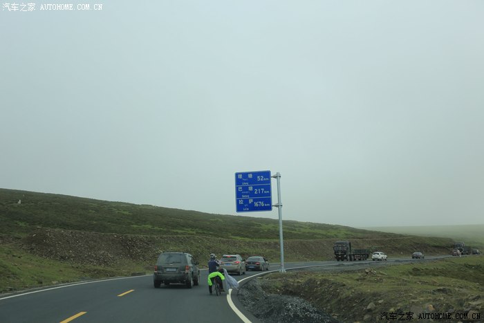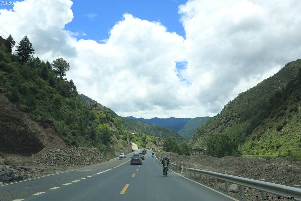 一路艰辛,后到达二郎山隧道前的休息区稍做休息,买了当地人卖的李子,特别甜^_^。 过了著名的二郎山隧道,路面平坦了不少,比上一段好多了,景色也好了起来,依旧是盘山路,依旧有很多大货车挡道,超车十分不易,导致最终硬是用了九个小时才到达康定。 今天这一段318上除了烂路以外,更让我印象深刻的是一路上看到的骑行者们,向坚韧勇敢的骑行者致敬!