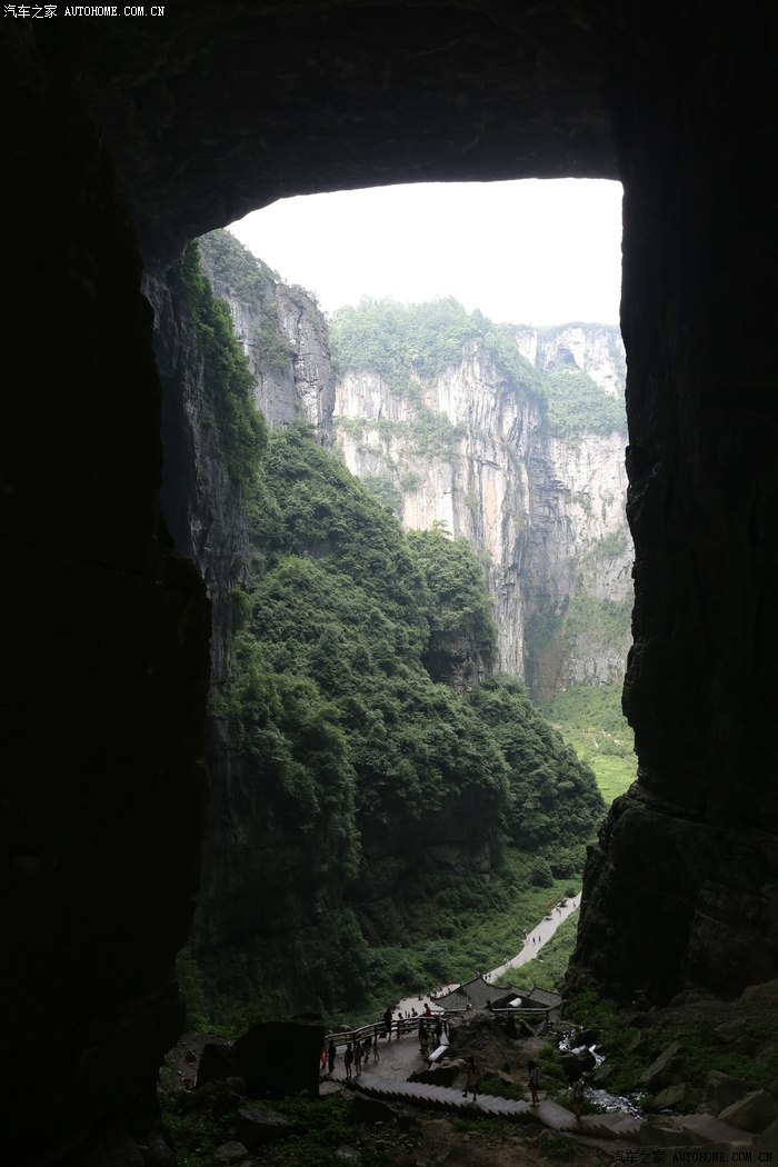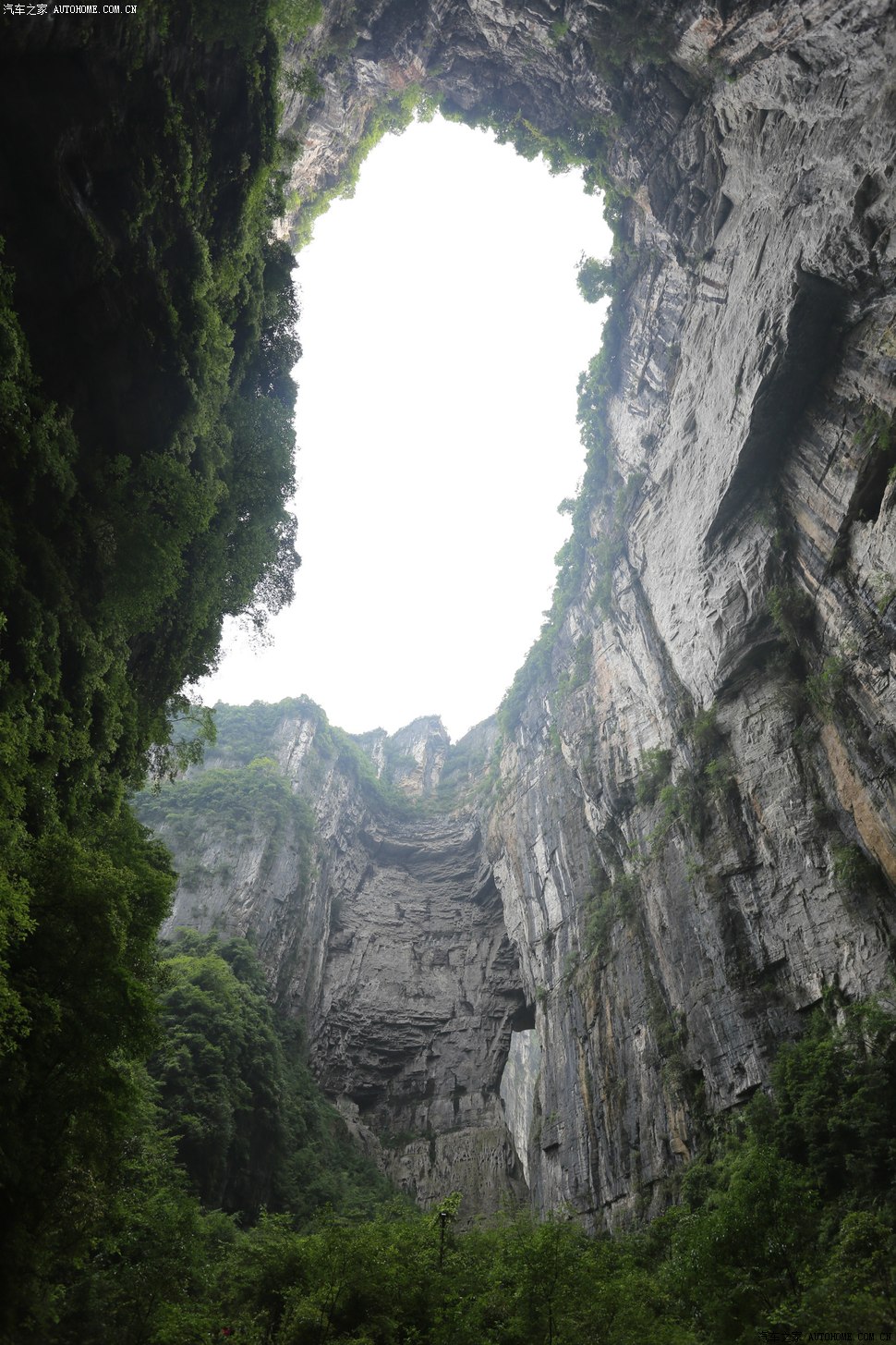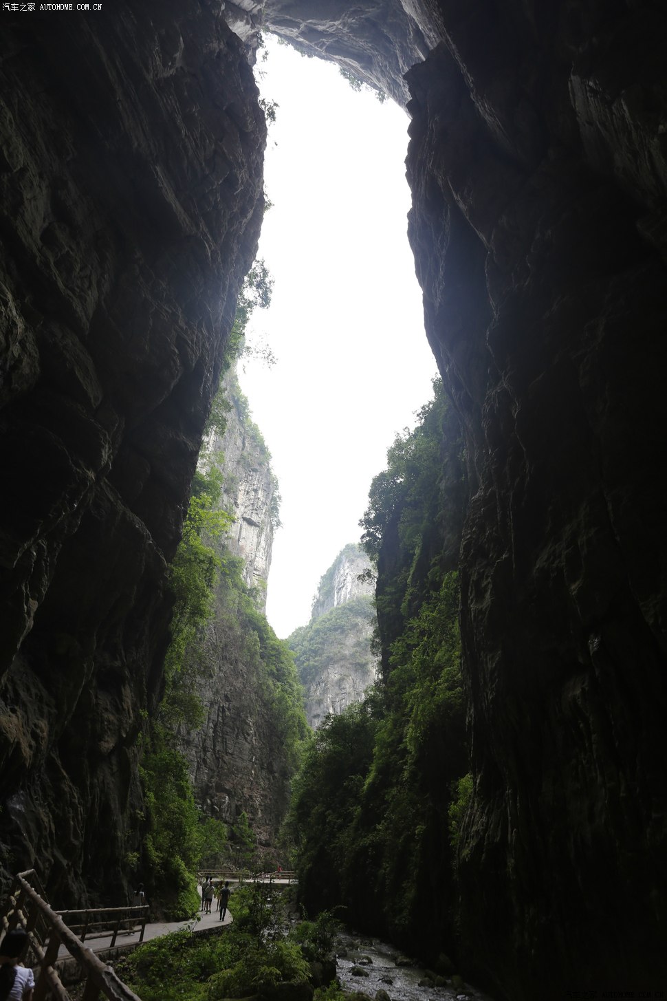 武隆,最初并不在我们的计划中,热播的“爸爸去哪儿”,热映的“变形金刚4”,张艺谋的《满城尽带黄金甲》,让这个并不耳熟的旅游地进入了大众的视线。天坑—大自然神奇的地质运动孕育出的宏伟奇景,成为了本次武隆之旅的最大期待。从恩施驱车约6个多小时抵达武隆县,武隆的旅游景点还是较多的,仙女山、地缝、天生三桥、芙蓉洞,我们选择了最感兴趣的天生三桥,坐垂直电梯下到山下,石桥、天坑便近在眼前。天生桥就是地下洞穴崩塌后,天然形成的连接天坑的石桥,这里有三座,天龙桥,青龙桥,黑龙桥,有的宽阔宏伟,有的狭窄紧仄,三座石桥之间夹着两个天坑,形成了独特的地貌奇观。抬头望天,人真若置身于四周高耸山崖所围合而成的大坑里,行走于其中,气温凉爽宜人。