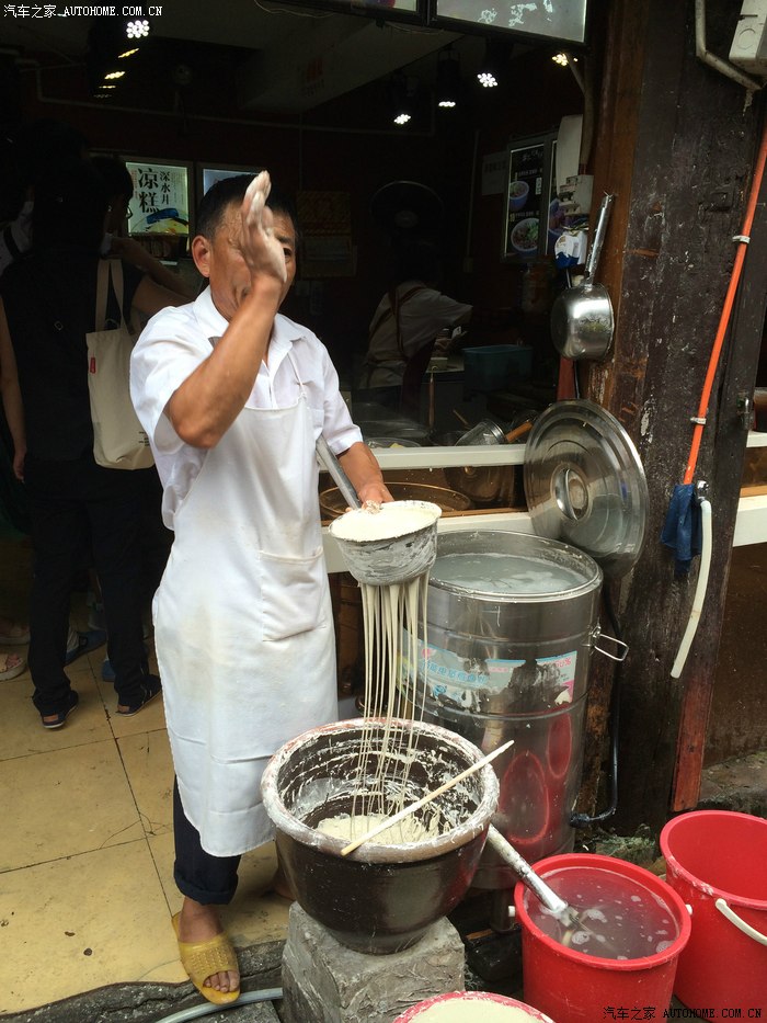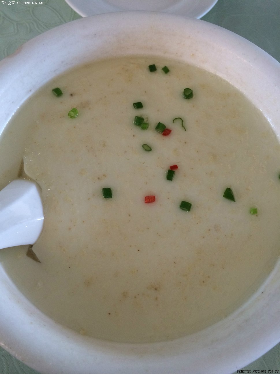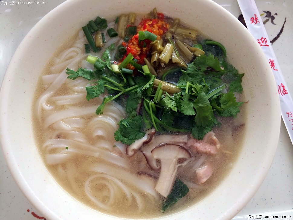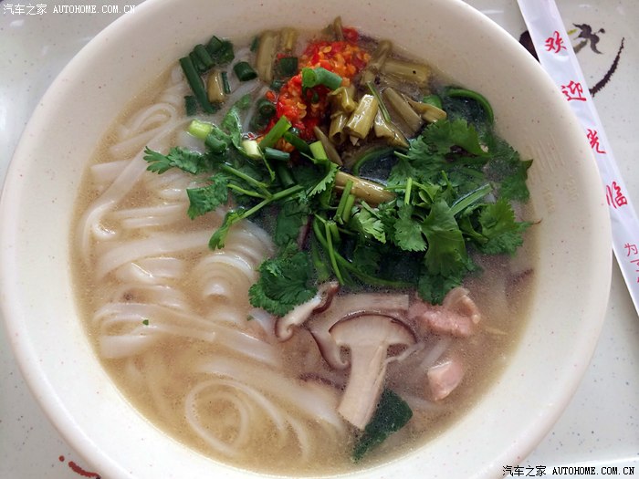 早上去给车子做50000公里保养,吃的三鲜鸡肉粉,10元,很大一碗,清清淡淡的汤粉,自己可以加酸菜,辣椒,香菜葱花,貌似酸菜酸笋是这里的必备调料了,汤汁鲜美,酸菜提味,粉长得跟挂面似的,窄窄扁扁的,但十分劲道,不糊汤,跟爽口,跟武汉的粉口感不一样。