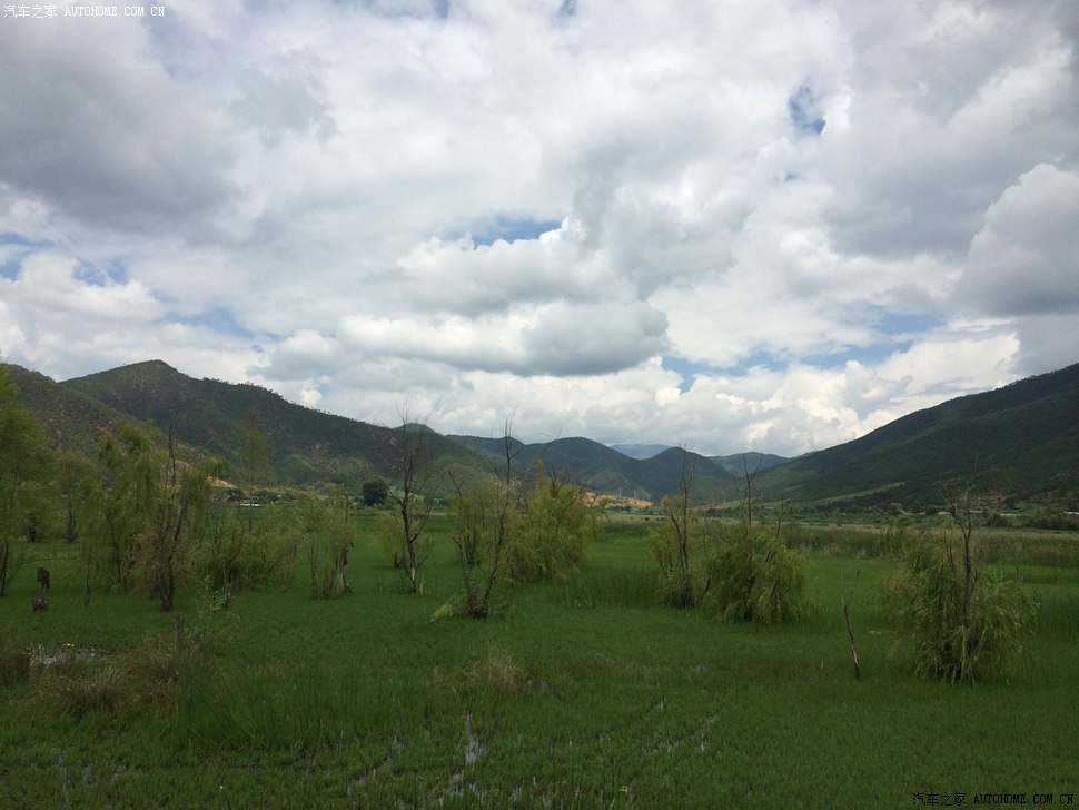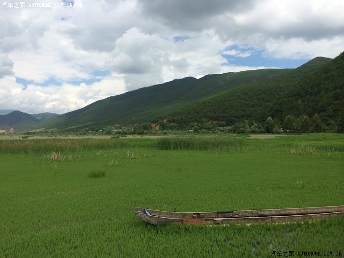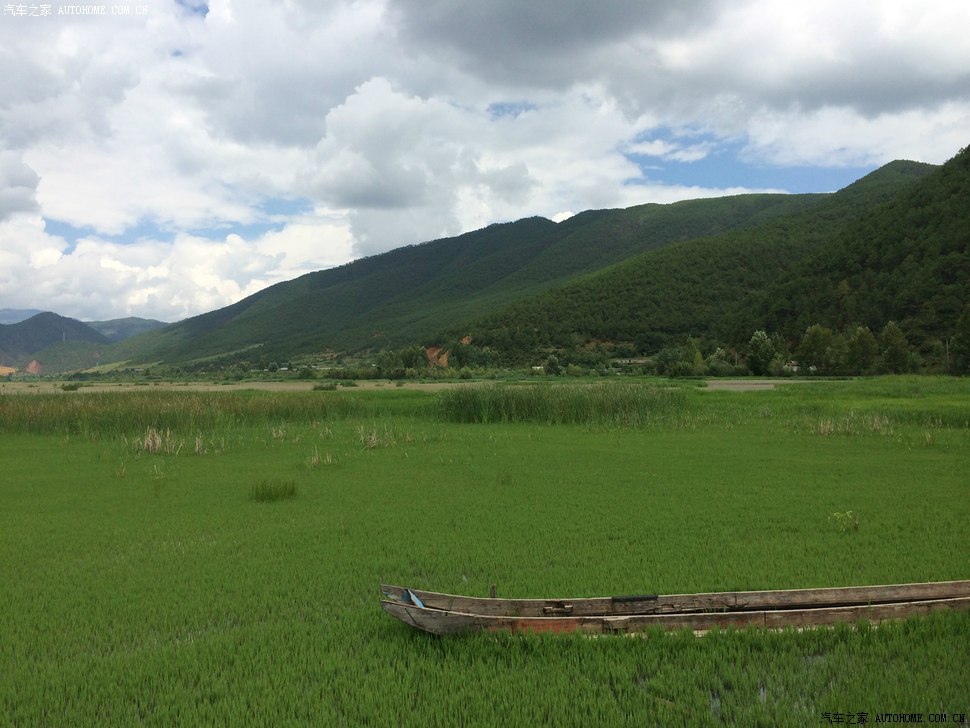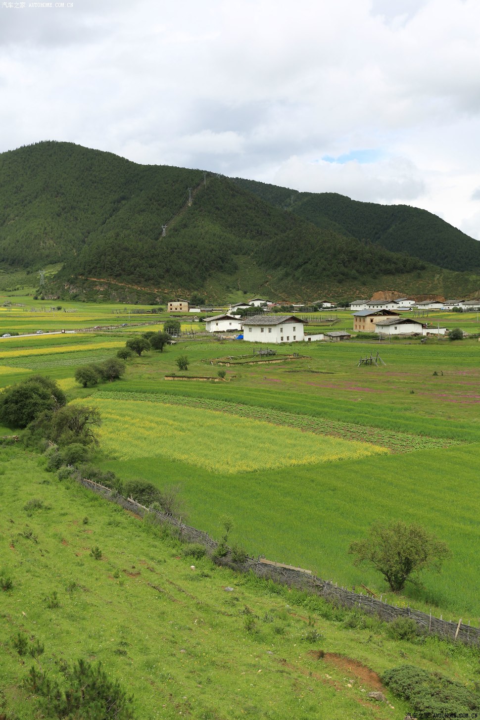 最重点的碧塔海,由于天阴阴的实在是让人有点失望,湖水毫无颜色,乌乌的暗暗的,没有生机,远山也是接近于黑的墨绿,另一边亦是原始森林,天空开始飘起了雨,于是买了船票坐船到乘车点出景区。普达措,大陆唯一一座国家公园,植被物种确实很丰富,但要说景色,觉得一般,可能确有天气的原因。香格里拉的美景在路上,不在景区!一路上,途经的景色让人留恋难忘,两层斜顶屋舍,没有了高楼大厦的阻碍,视野开阔,广袤无边,满眼绿色,黄色的油菜花,白色,粉紫色,各种作物,块状错落分布,丰富了田间地头,绿树遍地,路边蓝色,黄色粉色的野花点缀在绿草之中,散养的牲畜牦牛马黑猪,远处青山连绵,阴天的时候山上云雾缭绕犹如仙境,天晴的时候与蓝天白云相互映照美不胜收,无污染的纯净空气和天空,让人不愿离去!