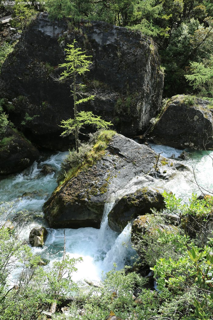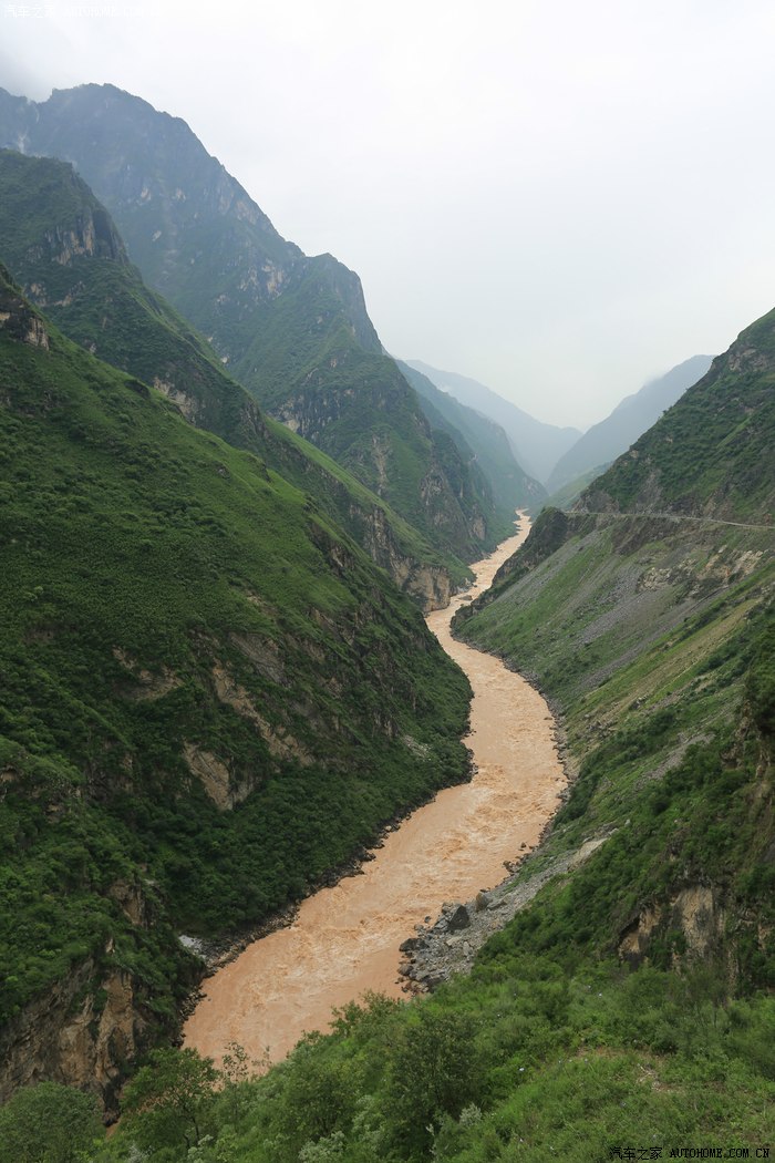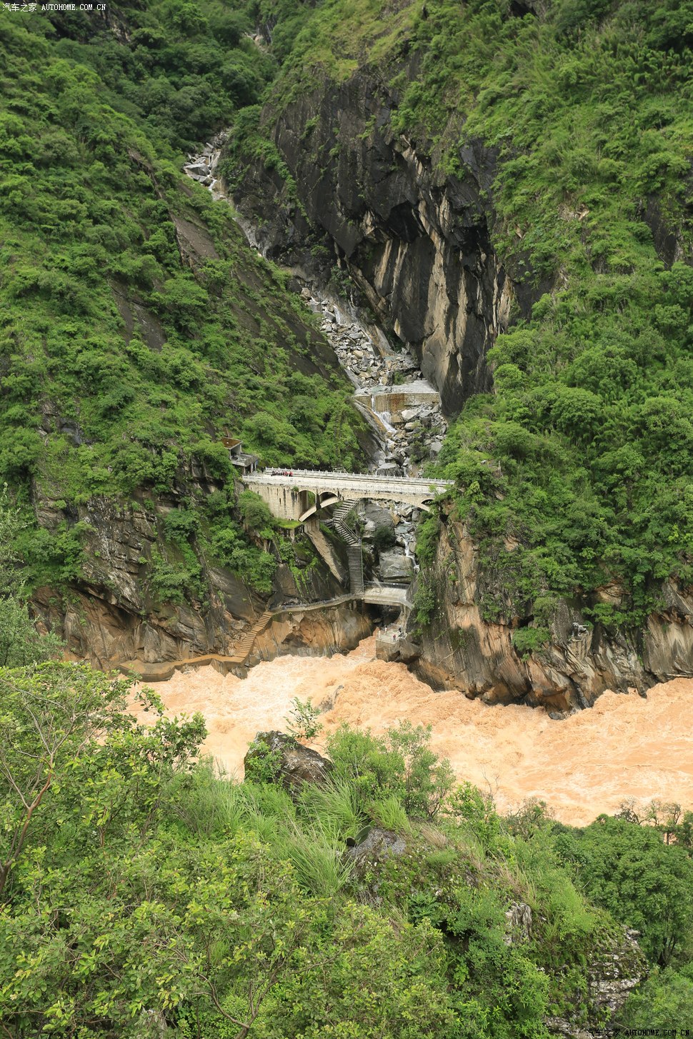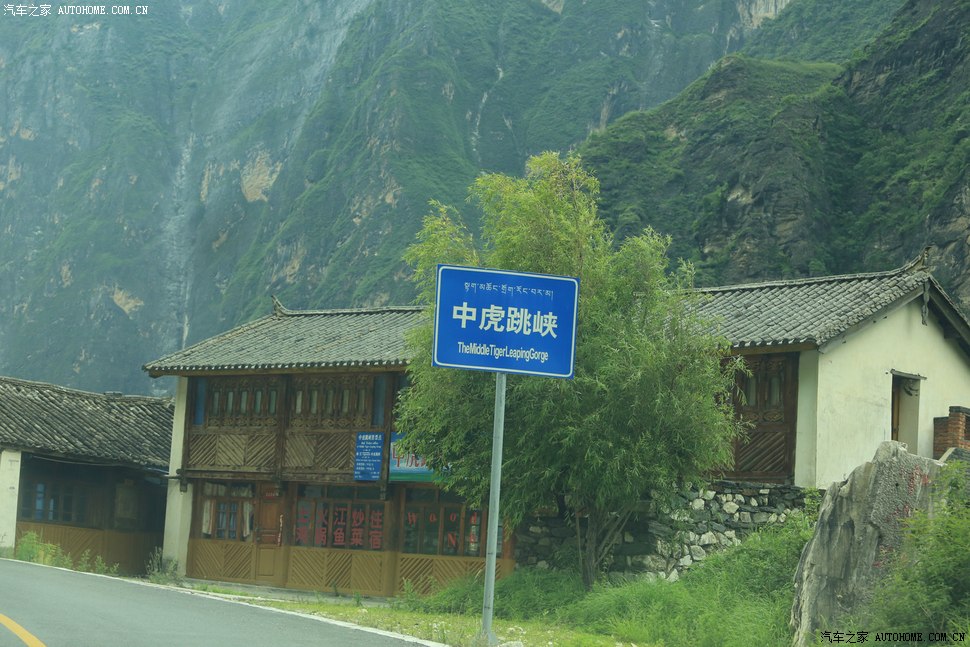 从上虎跳到中虎跳还需行驶约七八公里,这里的观景点就破落很多了,没有栈道,只有屋舍间的小路,还需交15元的观景费用,且视角并不能很好的观赏中虎跳,在返回的路上反而在路边一个可以停车的地方找到了更好的观景地方,中虎跳与上虎跳相比气势就平缓很多,不是河道突然变窄而成,这段江水下有着大大小小的岩石,因此江水流经此处是会形成大大小小的激流。