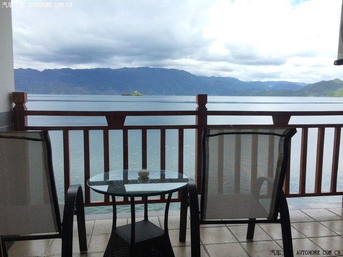 因为修路,改道绕行很是有了几段破路,雨后的黄泥水坑的面积再次刷新了纪录,有的甚至跟道路同宽,接连好几个,完全不知深浅,走得也煞是惊险,回程是不打算再走了。下午三点多进入泸沽湖景区,至此就进入到美丽的女儿国啦!在入口不远处的高处眺望,宁静的蓝色让人心思沉静,湖中有着些大大小小的岛,让泸沽湖又多了些活泼灵动,沿环湖路行驶,那幽深的蓝在阳光下泛着银白,闪着粼粼波光,湖边种着绿树,坐落着一排客栈酒店,很快就到了我们酒店所在地的洛水村,进入订好的三楼湖景房,与它就隔着一条步道的距离,站在阳台,蓝得令人心醉的泸沽湖满满映入眼帘,远处的连绵青山,湖中散落着小岛,完美的融合为一副宁静优美的画面,太美啦!