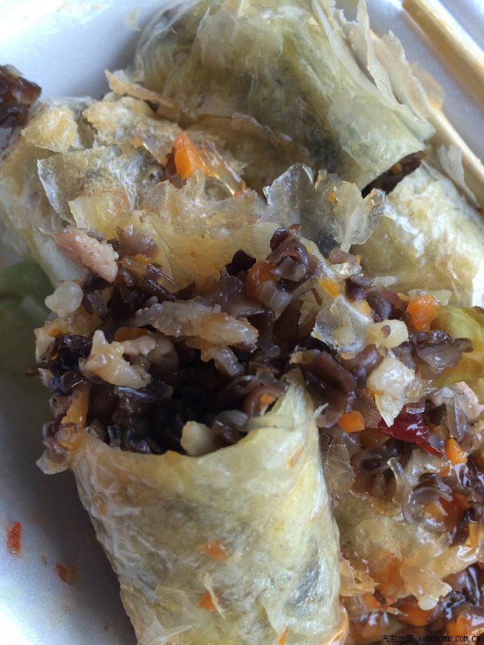 之后就去找吃的,同学推荐去侨港,便宜,还有比脸大的***卖,于是就去啦,绕了点弯路,终于找到了侨港风情街,这里是一片老的住宅区,街道中有集贸市场,也有各种卖吃的的店面,很有生活气息,买了朋友推荐的3.5一个的大叉烧包,果然个头顶大,越南春卷貌似出现频率挺高,卖家现做,薄得几乎透明的面皮里包上满满的馅料,里面有胡萝卜丁,木耳丁,粉丝丁,肉丁,白菜末,然后放入油锅炸,炸至表皮金黄起泡捞起,炸好后旁边放上酸中带点辣的酱汁。凉粉,里面有黄黄的凉虾还有黑黑的龟苓膏,冰爽嫩滑。