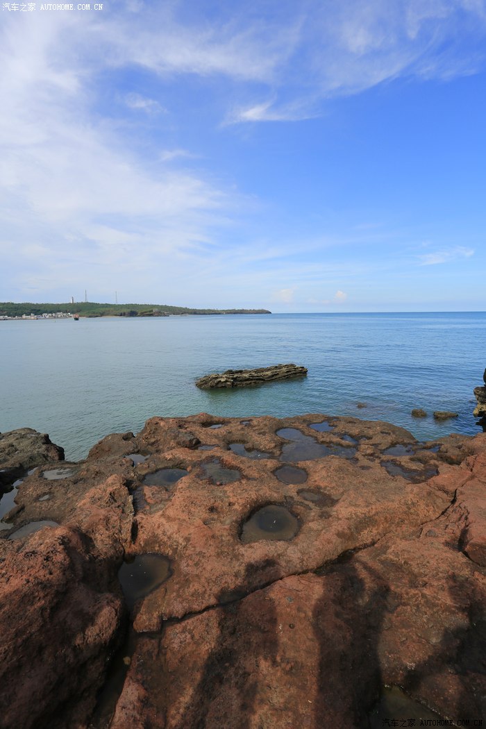 首先打算去离酒店较近的景点—鳄鱼山公园,坐三轮拉到博物馆,从博物馆坐景区往返的电瓶车,这里是座火山岛,四周都是蓝蓝的大海,但岛上都是各种形态,各种纹理的火山石,黑色的,红褐色的,一大片或是一个个独立的石头,延伸到海里,岛上还有珊瑚沉积岩,还有好多白色的珊瑚尸体可以捡,各种形状都有。顽强的仙人掌长在石头里,一片片一丛丛,特别茂盛。