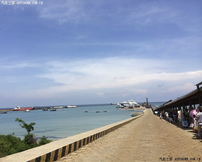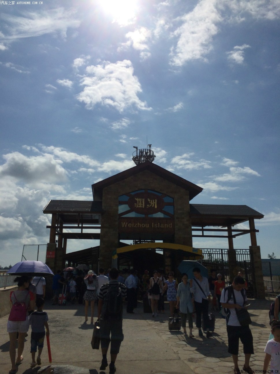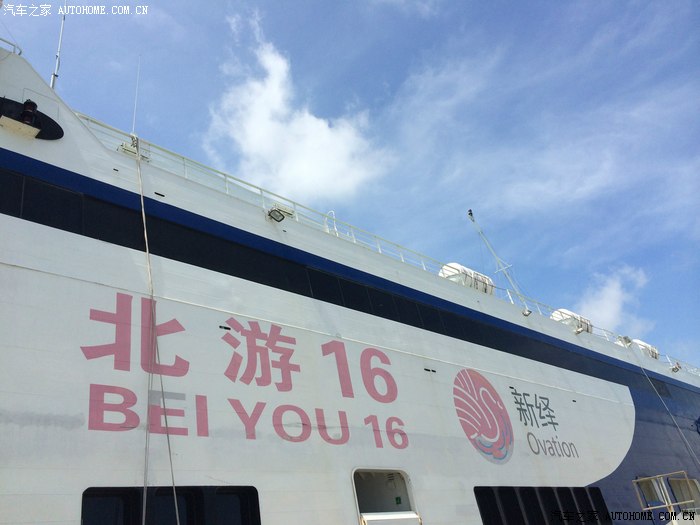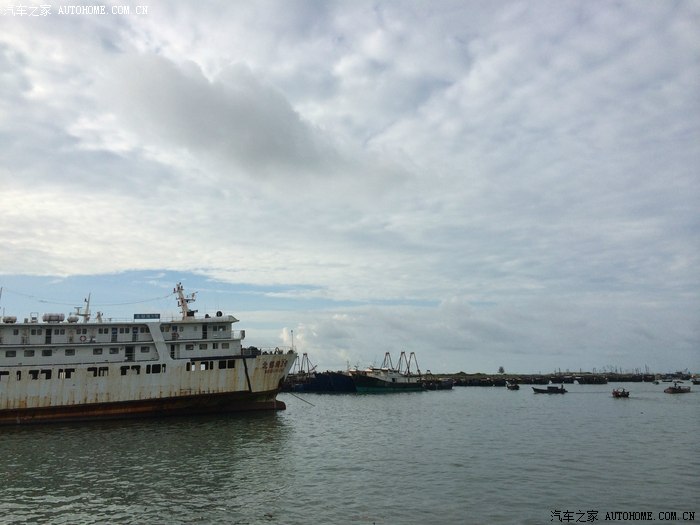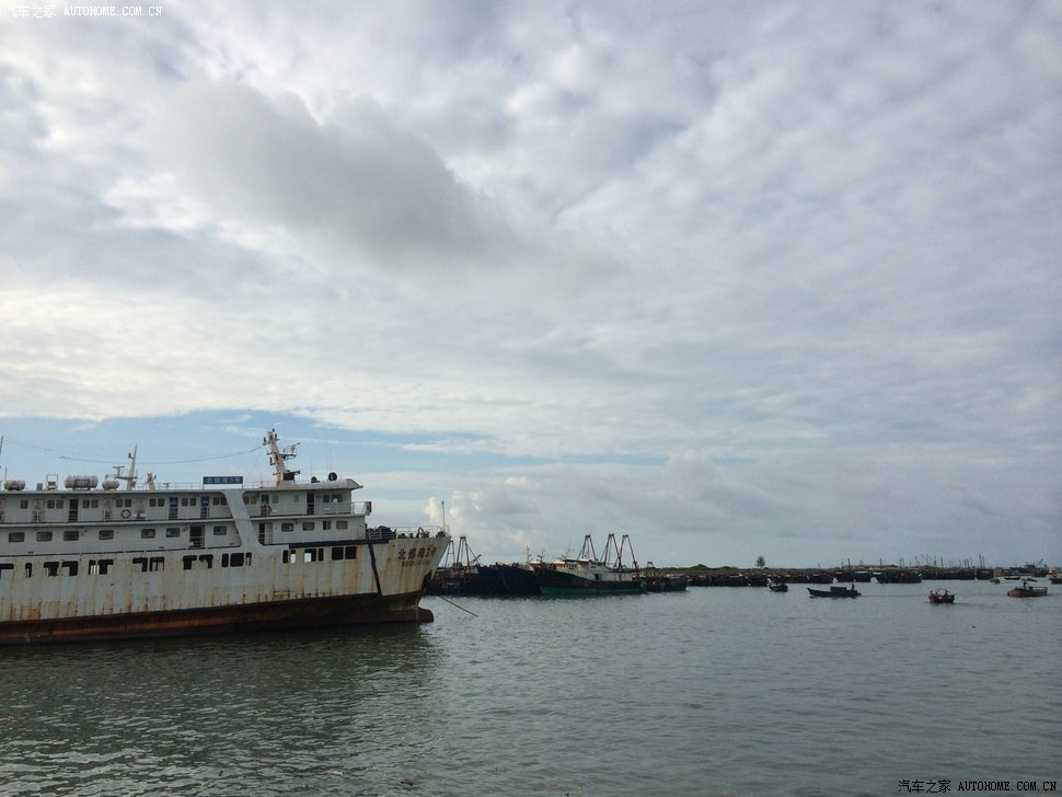 今天起了个大早,因为我们去往涠洲岛的船票买在了8:30,在港口的停车场停好车就拖着两个人两天的行李进去候船了,长这么大第一次坐轮船,还有点小新鲜^_^,可是我们的这班船是个小轮船,跟旁边停靠的“北部湾”大轮船相比显得好小只,并且也容易晕船啊……随着船启航,就开始有点晕了,一路都闭着眼睛睡觉,一个小时多点就到达涠洲岛了,迎接我们的是灿烂的阳光,一望无边的蓝天碧海和热情似火的气温,买好涠洲岛的上岛门票,坐上酒店接我们的车,涠洲岛之旅就开始啦!