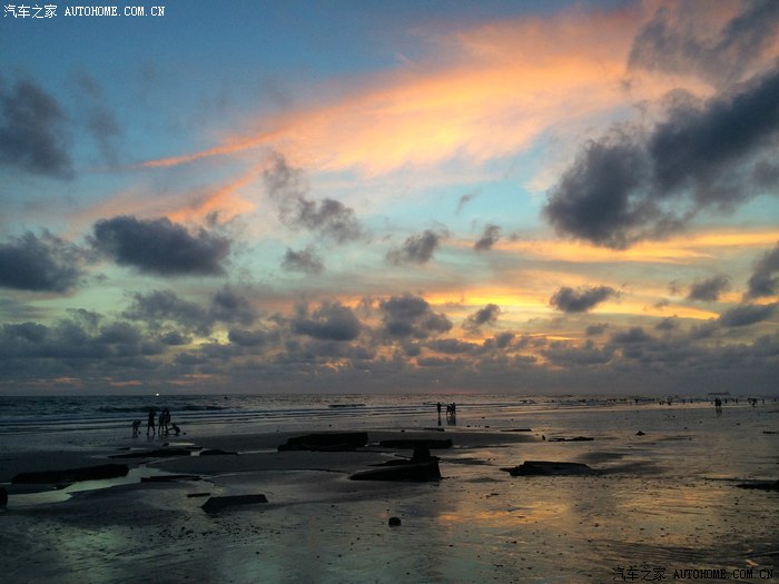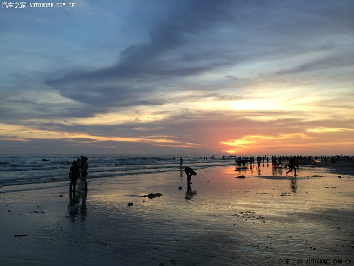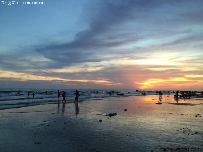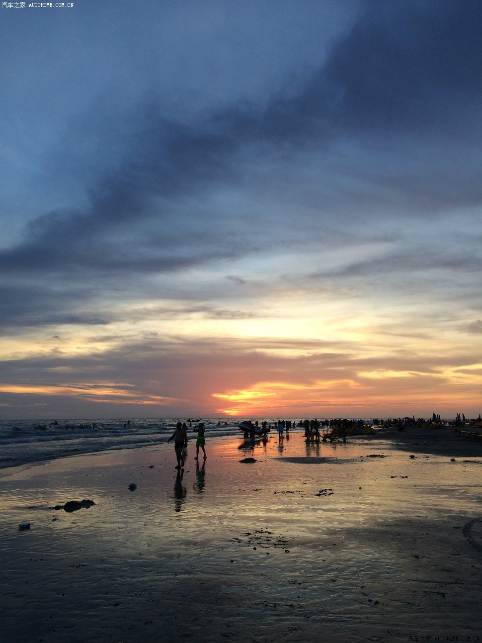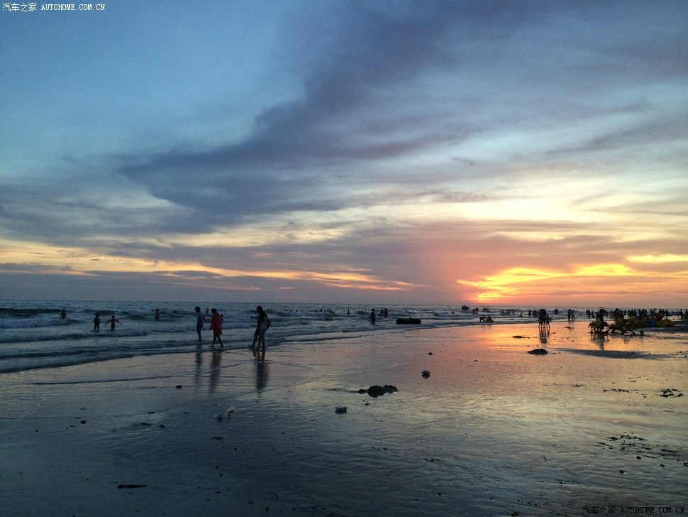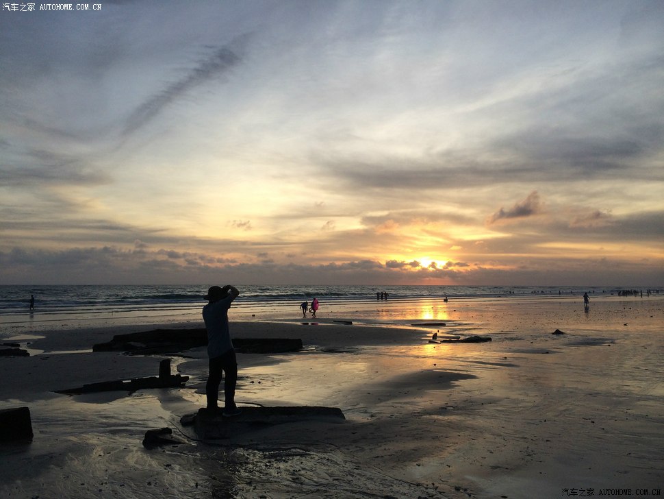 下一站去离酒店很近的滴水丹萍,步行一会就到了,海滩上很是热闹,孩子们的笑声天真而开怀,跟银滩有点像,很多人在海里游泳玩耍,有的在海边漫步,不过这里的沙子里有好多珊瑚,光脚走有点痛。去得时候正好接近落日时分,滩涂上倒影着落日的阳光和海水,像一面镜子,很美,很宁静的感觉。明天再来这里!