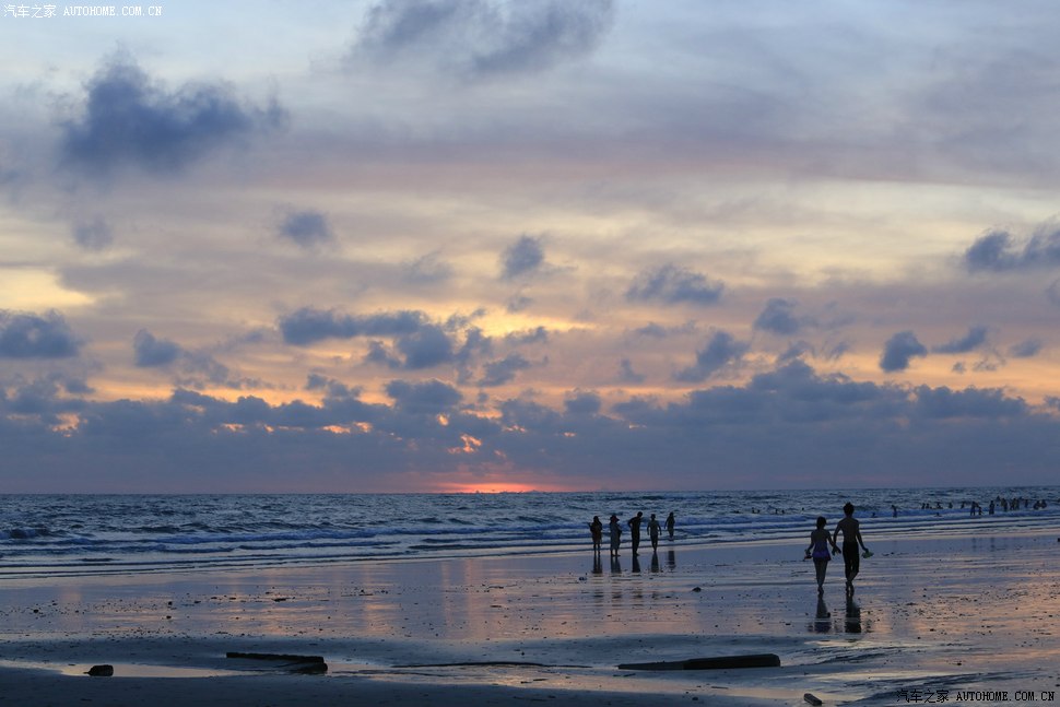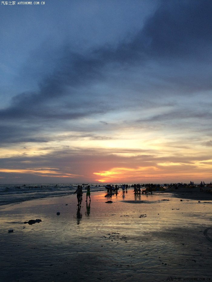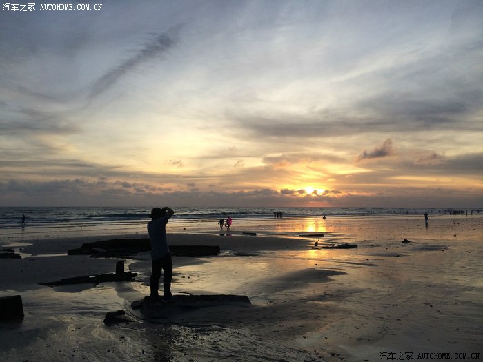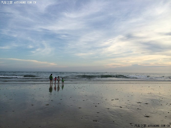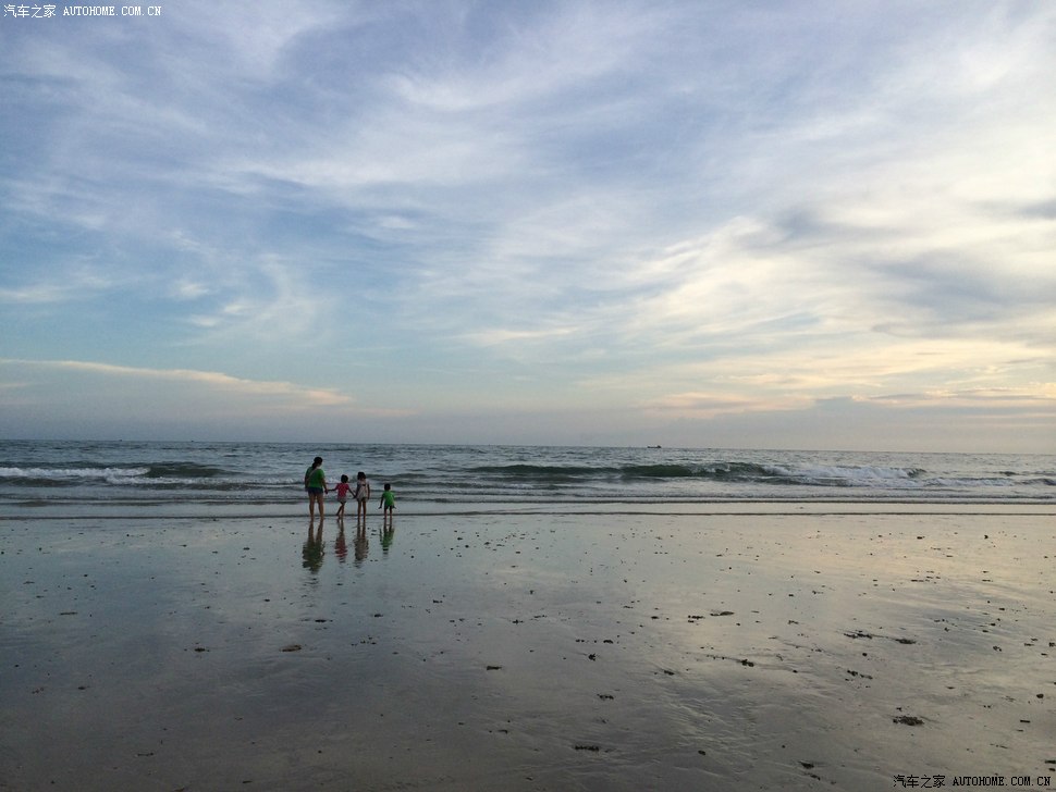 吃饱喝足后就回到银滩啦,没有换泳衣,就在海滩散散步啦,沙滩上算是各种小洞,移动迅速的小沙蟹在上面跑来跑去,光脚踩在沙子上,软软的,凉凉的,这里的海水还比较清澈,人也不算太多,没有那种“下饺子”的情景,沿着海边慢慢走,望着一望无际的海水,涌起的一阵阵调皮地打湿脚丫的浪花,真有一种面朝大海春暖花开的豁然之感!