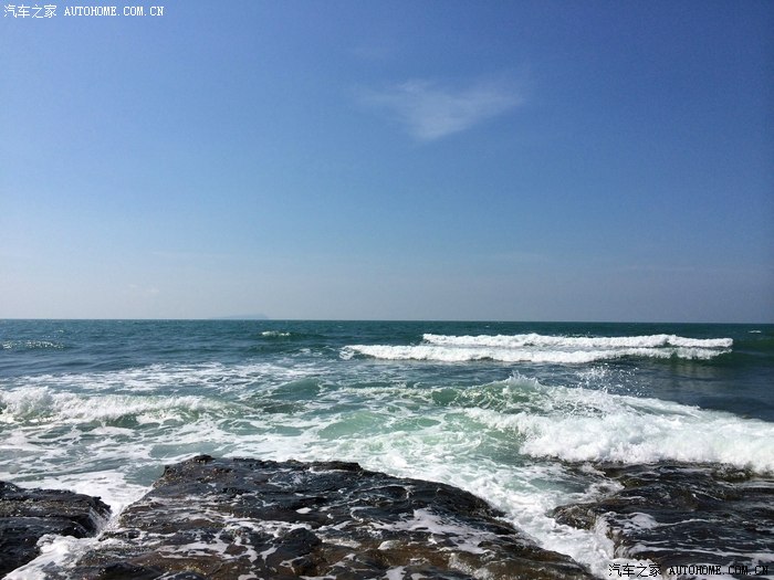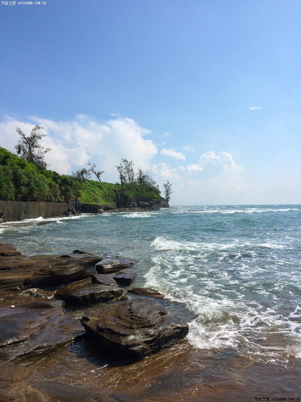 昨天常去的糖水店老板帮忙联系了一个三轮师傅,100块包我们第二天的用车,跟师傅约的9点,接上头后就直奔今天的第一个点—五彩滩,五彩滩,听名字应该这里是五彩斑斓的咯,但是走下去一看,一片蓝色的海呈现在眼前,波澜壮阔,无边无际,与蓝天白云连成一片,今天天气真好,海水在阳光下呈现出深浅不一的蓝,岸边是蓝绿色的海水,和浪花一起冲刷着银灰色的沙滩,浪好大,海浪奏着响亮的交响乐,一波波白色的浪花拍打着海岸和黑色的礁石,也拍打着人们的脚丫,浪头大的时候能拍到小腿,引得叫声一片。