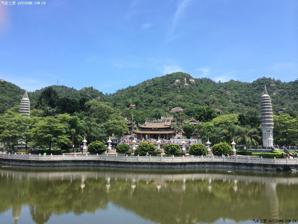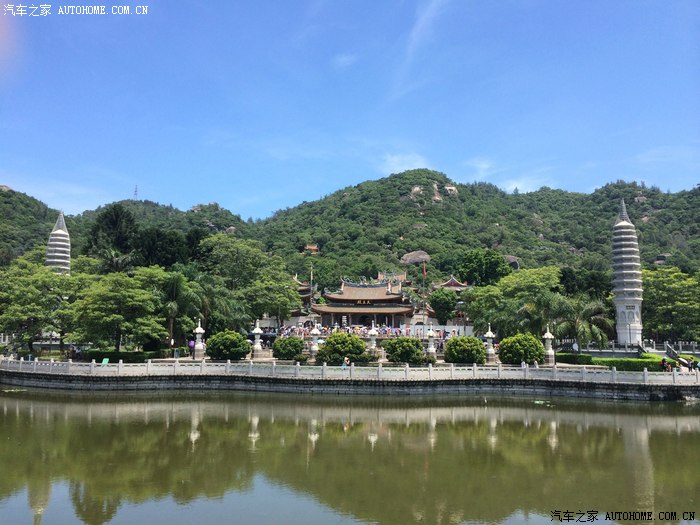 南普陀寺小巧玲珑,正中是高高在上的天王殿,台阶下方是一个长方形的放生池,神龟们悠闲地晒着太阳,池子两侧各有一个高高的白塔,寺中绿树茂盛,背靠青山,繁华的都市中的一方幽静之所。
