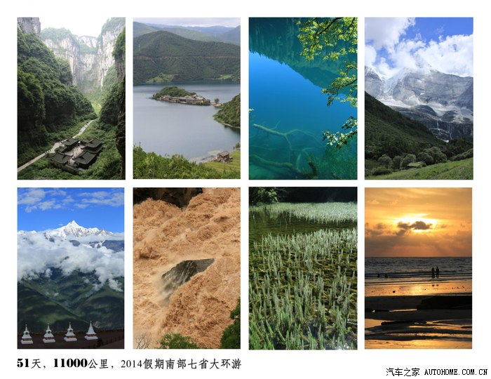 旅行,是会上瘾的。 2012年,婚后的我们有了人生中第一辆车,从第一年的庐山—黄山的小试牛刀,到2013年39天单车环游新疆,在2014年我们的第三次环游又开始了,仿佛上了瘾般,有了假期便在家里呆不住,心魔难耐。 今年的出行规划了将近一年的时间,在制定线路的同时还考虑到下一次自驾旅行的计划,几番调整,最终出炉了南部七省一市大环游的行程计划,真是煞费了一番苦心。重庆、成都、稻城、亚丁、香格里拉、丽江、泸沽湖、洱海、黄果树、北海、涠洲岛、厦门……