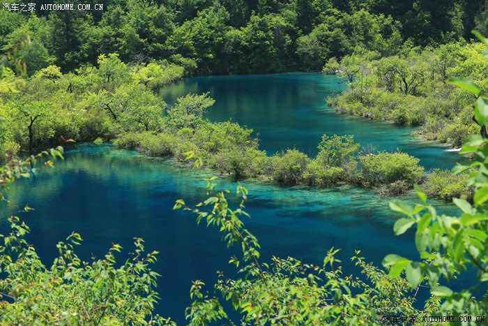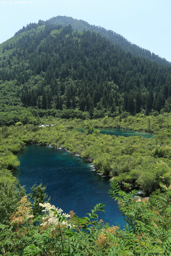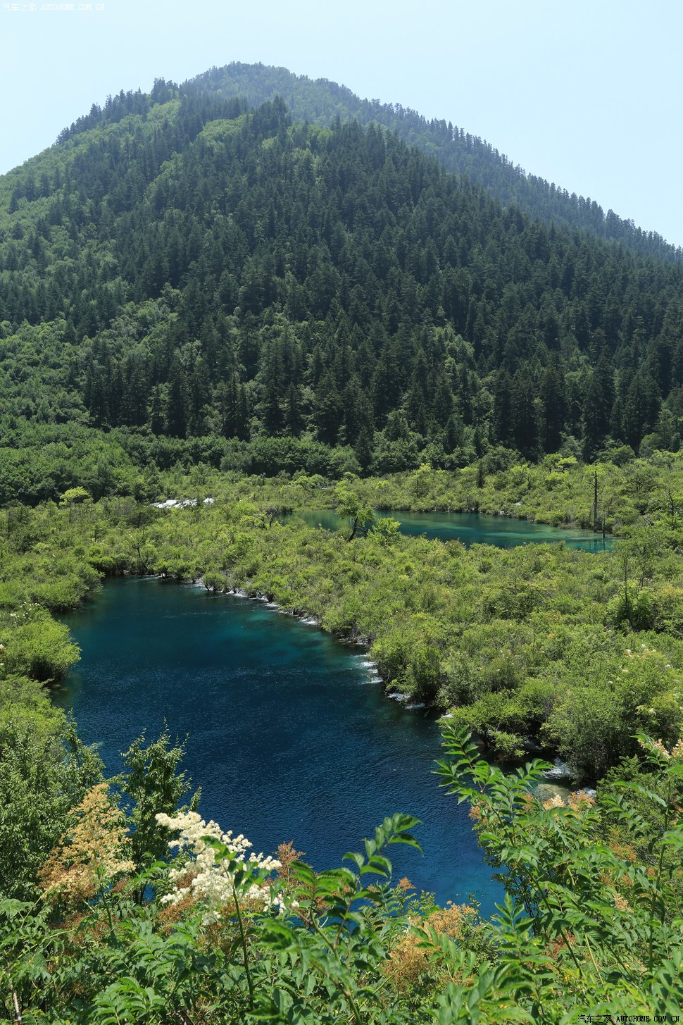正午时分,到达树正沟,中午的树正沟游人稀少,作为沟口区间车的第一个停靠点,游人大多早上将此作为第一站,抑或先去其余两条沟,下午折返时来这里游览,因此中午的时候这里一片寂静,完全没有早上的熙熙攘攘和嘈杂声,可以非常悠闲的慢慢观赏。犀牛海,树正瀑布,老虎海已在昨日走过,因此我们从树正群海往沟口方向游览。树正群海由若干个小海子组成,似连非连,如天上散落下的颗颗蓝宝石,正午的阳光,让湖水的颜色越发透亮艳丽,微风轻启,漾起丝丝水波。卧龙海,湖水宽阔,碧绿与蓝绿交织,一排白色的小瀑流倾泻而下,打破了湖水的宁静,让它多了份灵动的美。火花海,顾名思义,波光闪烁如千万颗小火球坠于湖面之上,当微风轻拂,阳光下的海子碧绿幽蓝,湖光潋滟,如繁星般闪烁。