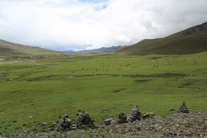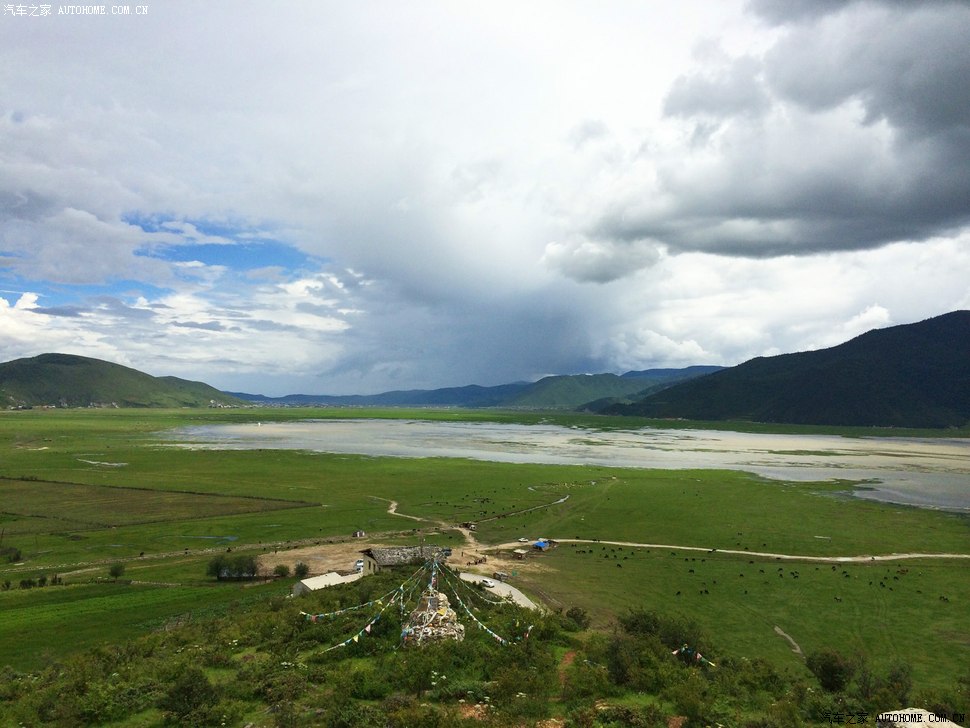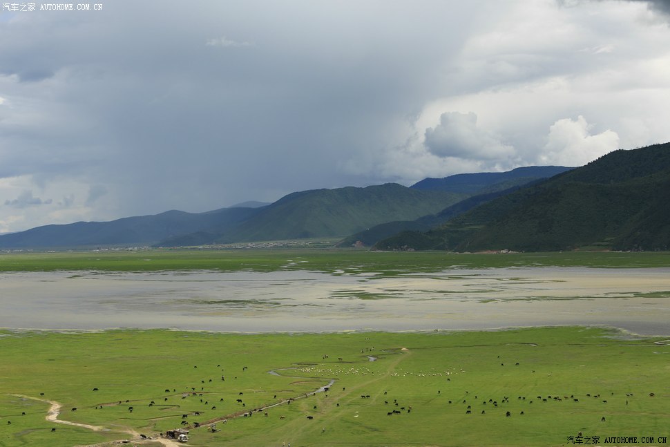 弥里塘草场区间车停留十分钟让游客观赏拍照,从观景台俯瞰草场,广阔无边,牲畜散落其上,牧民的屋舍如繁星点缀,和谐丰裕,安居乐业之景。