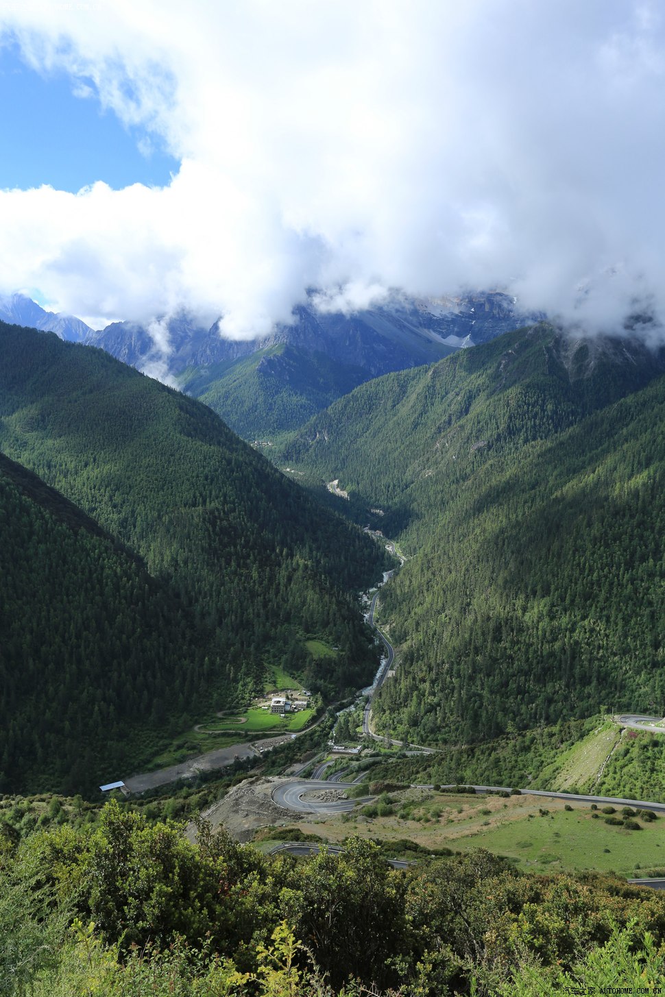 早上从康定出发时已下起了沥沥小雨,天上云层很厚,盘踞在远山之上,考虑到下雨路况不会很好,天气也不做美,遂决定不去贡嘎山了,直接去雅江。继续行驶在大货车,小汽车,骑行者混合的318上,道路还算平坦,路况不错,偶尔错车或者超超大货车,翻越折多山时,海拔已达到4298米,气温下降至8摄氏度。