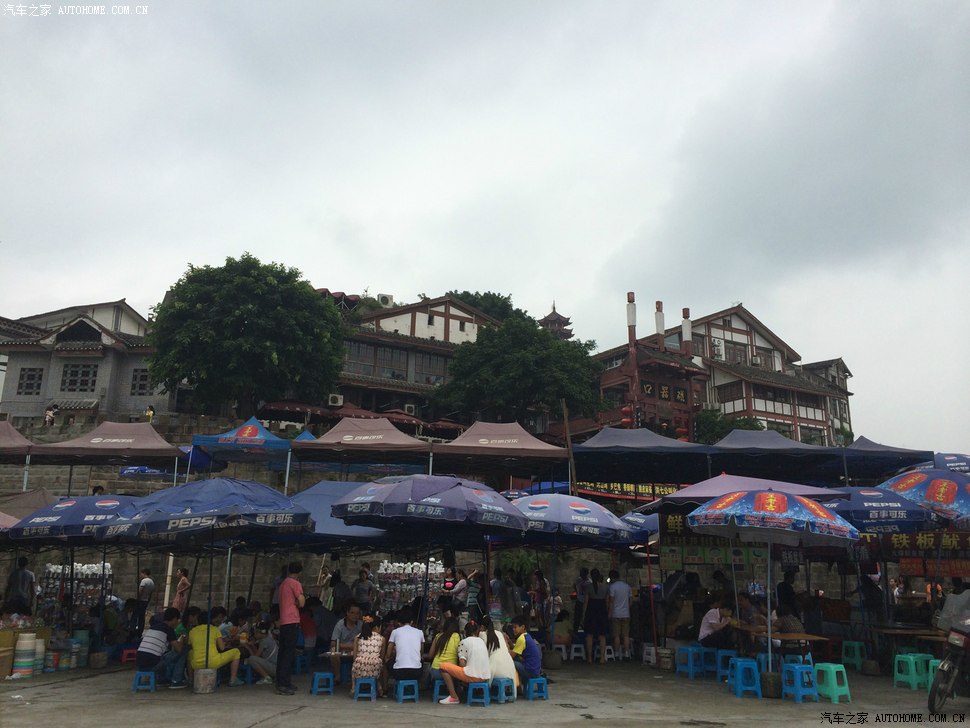 约2个多小时的车程后到达磁器口,磁器口曾是明清时期的一座码头,但时至今日,这座古镇已难寻往日的生活气息,但还是一如往昔的热闹非凡,商铺林立,各种卖小吃、特产的小店,间或夹杂着或文艺或个性的咖啡馆、水吧、纪念品店等,一片繁华之景,走到尽头就能看见码头,游船停靠在岸边成为休闲娱乐之场所,岸上全部是经营着各种美食的摊点,略显杂乱。