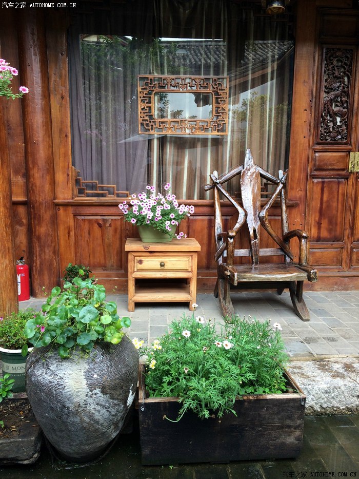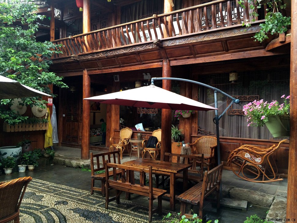下午约五点到达束河古镇,所订的云聚客栈地段很好,离繁华的四方街很近,却不喧闹,第一次住这种庭院式的客栈,有人说来丽江就是要住客栈,各种风格的客栈和有故事的老板才是丽江生活的魅力所在,这一次我们的尝试感觉还不错,都有点兴奋,老板亲切热情,庭院中各种绿植,鲜花,阳伞休闲椅,布置得颇具情调,深得我心。