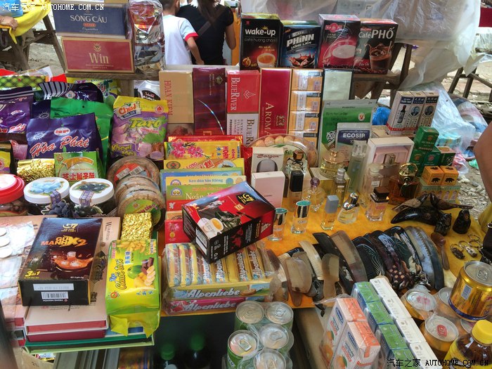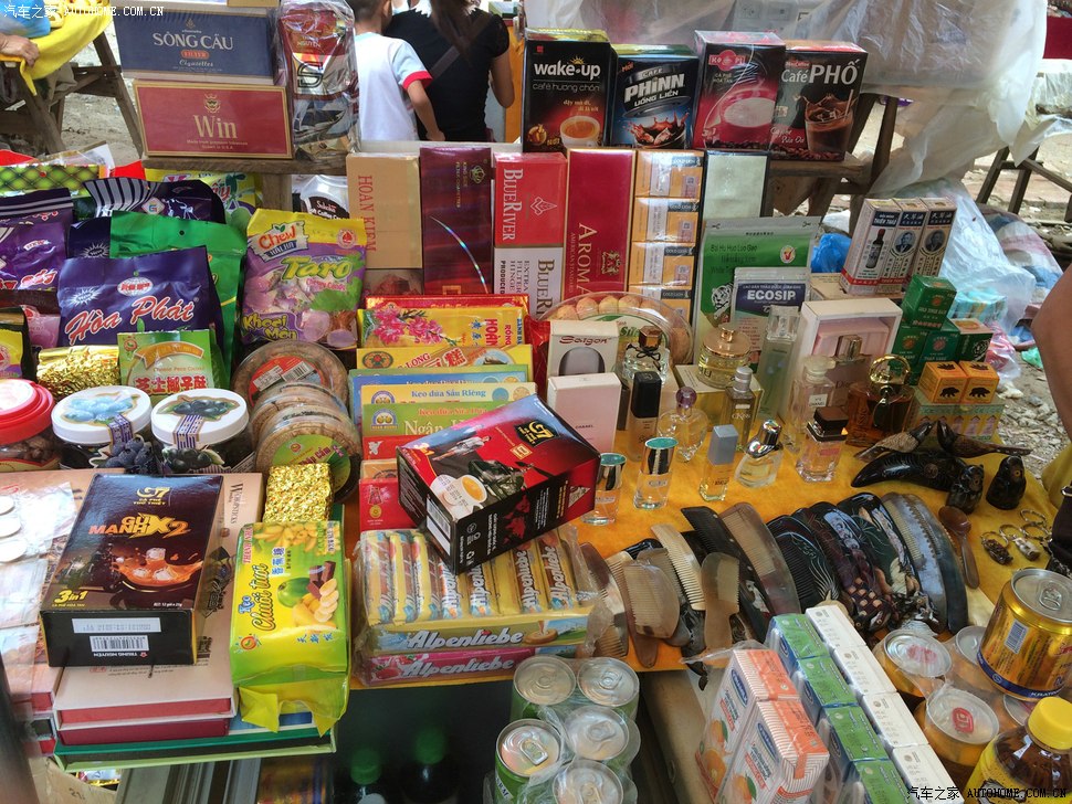 到53号界碑处,是边境小市场,一个个遮阳伞下是越南人摆的小摊,咖啡,蔬果干,糖果,香烟,香水,手工艺品,饰品,饮料,糕点,塑料凉鞋凉拖…价格便宜,公道,买的最好的咖啡也才28元一盒,凉鞋凉拖也才10元左右。