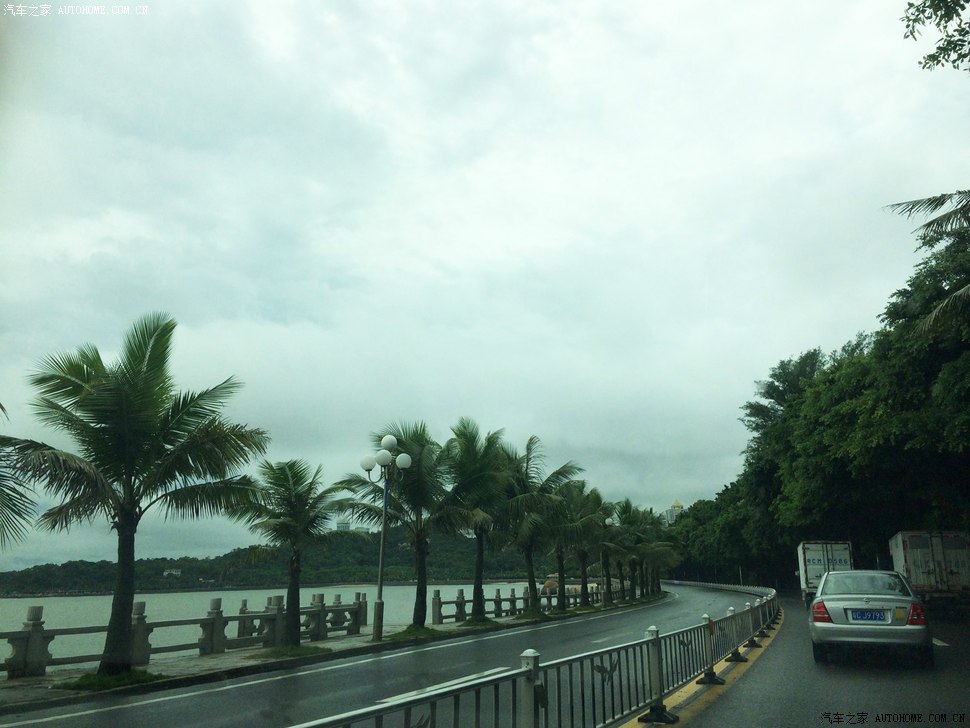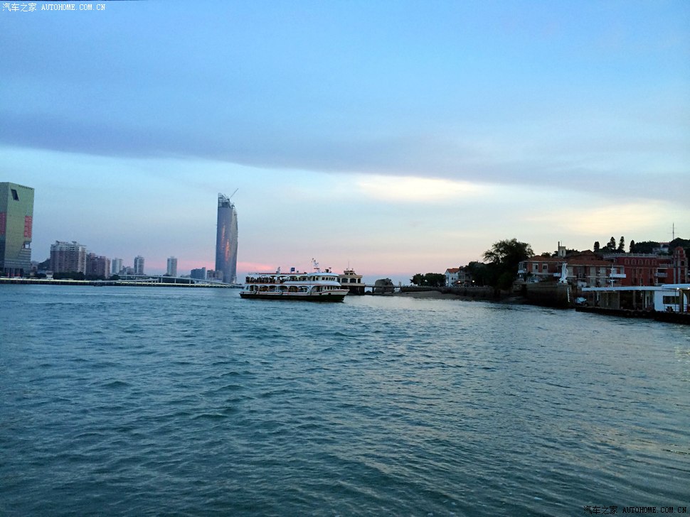 吃撑了,开车到情侣路走走,天黑,也下着雨,江边的房子多为住宅楼,不高,晚上的灯光不是很亮,好节能环保!江边还停靠着渔船,由于太黑,只能看出轮廓,明天早上再过来走走情侣路吧~