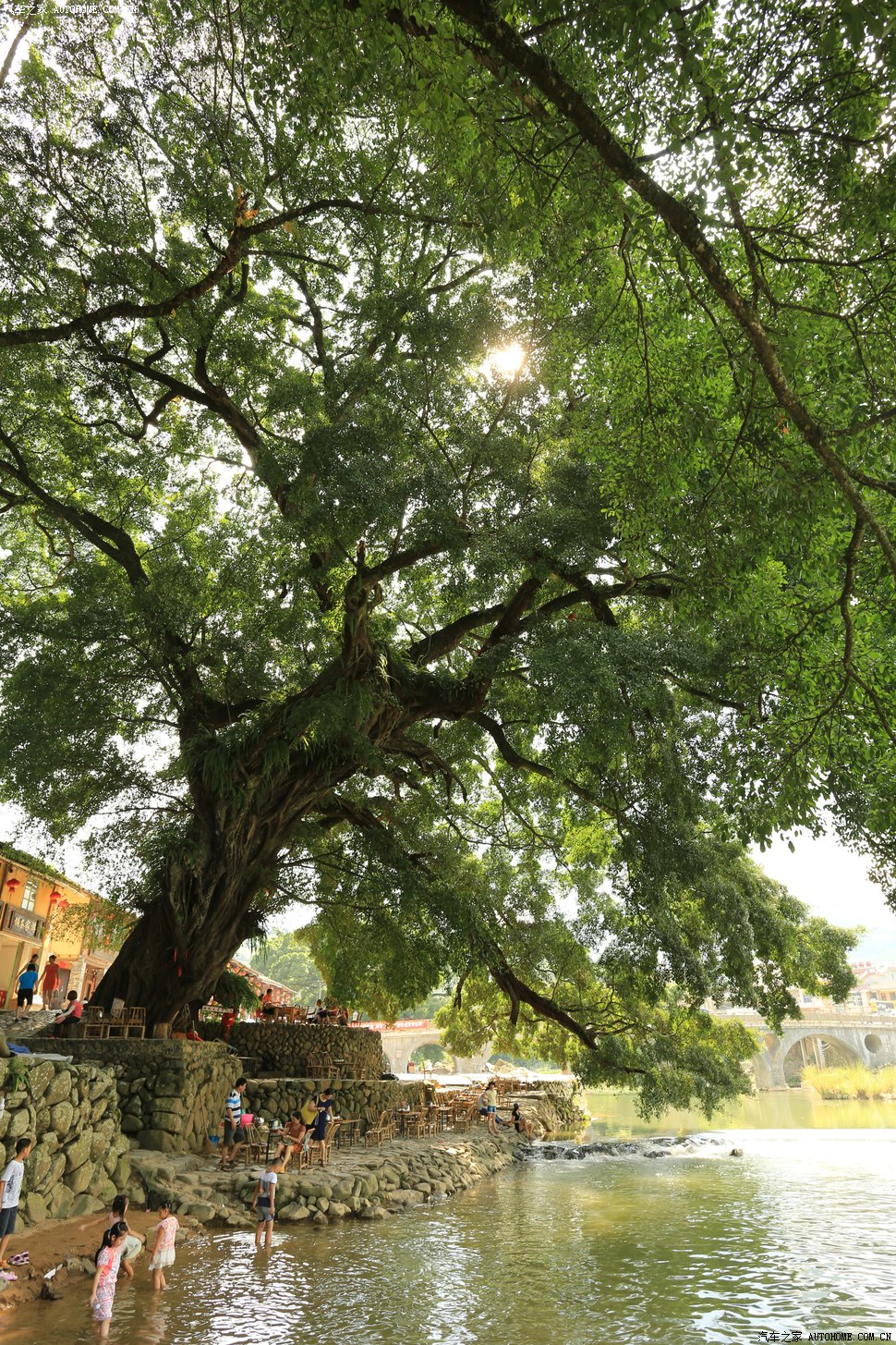 云水谣,真是一个浪漫的名字,潺潺流动的小河流经村庄,河边分布着大大的榕树,一副小桥流水人家的景象,云水谣生长着许多大榕树,粗壮的树干,宽大的枝叶遮天蔽日,恩泽着一方水土。在千年的老榕树下喝茶,纳凉,听老板讲述老榕树背后的凄美爱情传说。