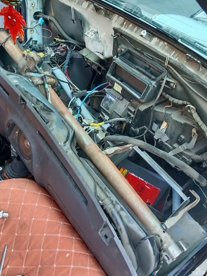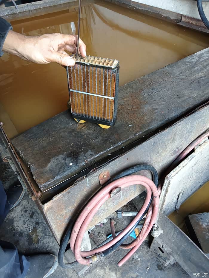 清洗水箱途中,发现小水箱内部出奇的干净,没有水垢,看来之前的脉冲起作用了,暖风不热的暖因看来不是小水箱的问题,检查暖风水阀开关处除了轻微防冻液渗漏,开闭自如,工作正常,焕然大悟,小题大做了,懂的车友知道咋回事了吧,无所谓了,已经拆的稀巴烂,当提前保养了,这地方至少十年不用动了