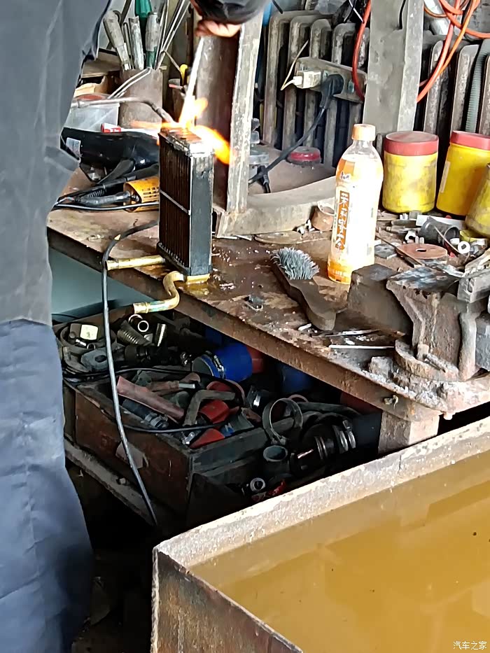 本着中华民族传统美德原则,还是修理修理这个原车的旧水箱吧,新的留着备用,家里毕竟还有几辆奥拓呢,只要给检车还要继续开