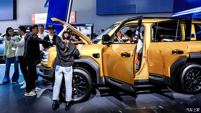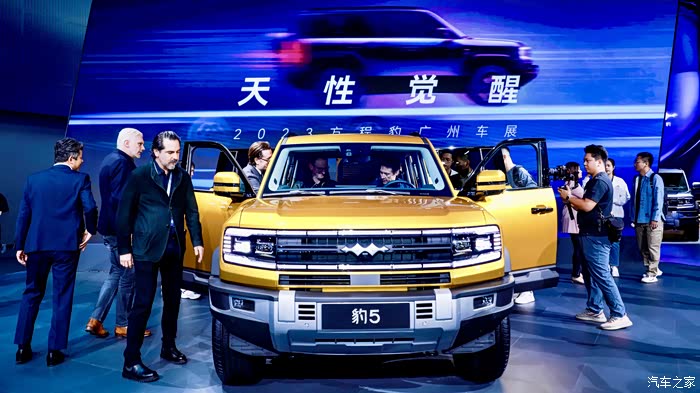 先盲猜一辆车:超级混动、三把锁、4.8秒破百和百公里油耗7.8L,相信最近关注方程豹的车友都能猜到,这辆车,就是我们今天在车展看到的硬派越野SUV——豹5。