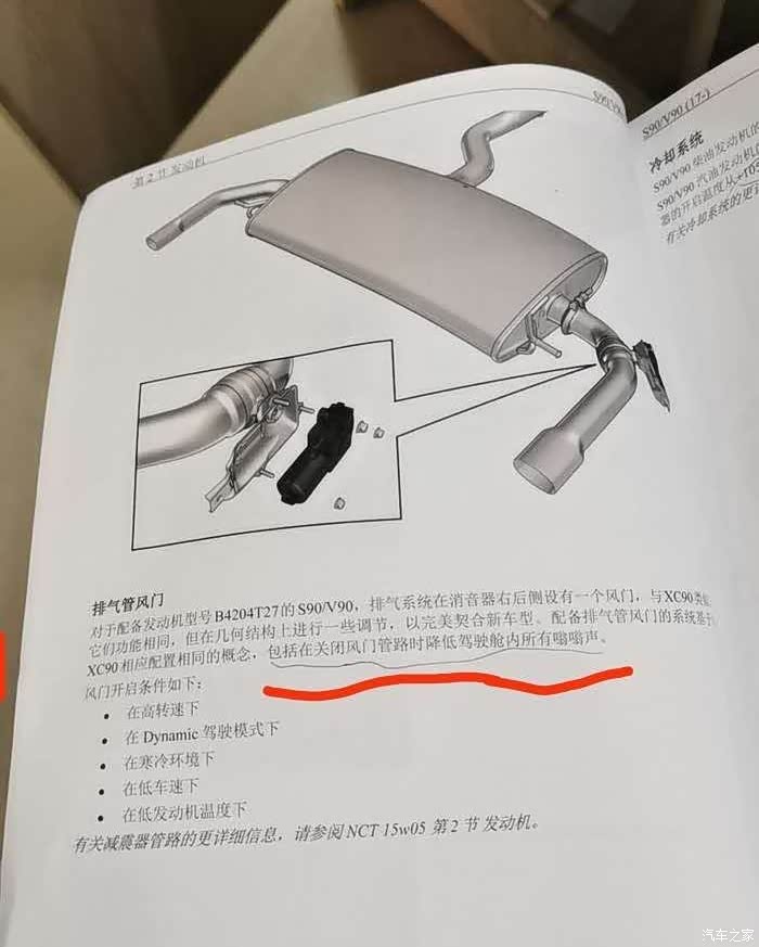 但有幸得知后期车型将会改进,于是慢慢苦等 ,终于等来了带阀门的XC60,虽然官方说的是为了环保,但是参阅90的说明书,上边明确写有,阀门能够降低怠速时车辆的嗡嗡声