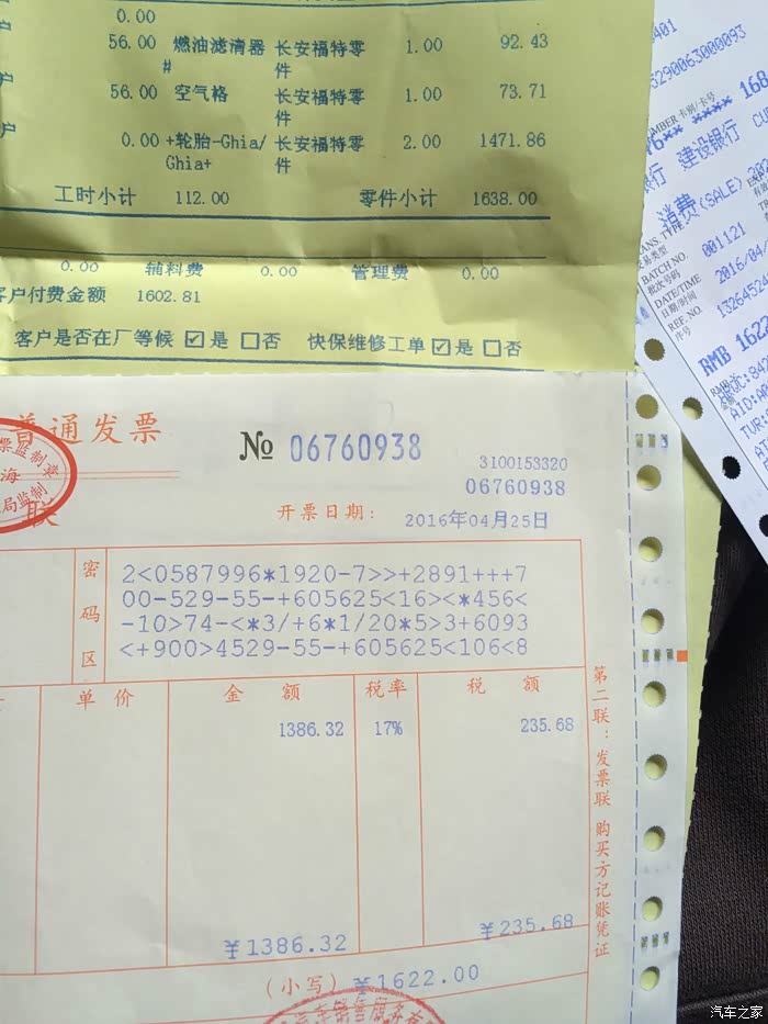 半年一次的例行保养开始了,按例电话预约,确认时间后来到了4S,半年跑了2800多KM,我醉了下车时的KM数套上套子在前台确认好了需要更换的东西:机油机滤,燃油滤,空滤后跟着工作人员来到了仓库,偷拍了一下,里面都是好东西嘿嘿窗口发机油等配件因为今天周一,所以车间人不是很多,周末的话人就比较多了小细节不错升起来自己检查了一下轮胎,前轮有很多裂纹,老化了,差不多该换了,后轮就还不错,明显磨损低放机油,顺便检查有没有哪里漏油更换机滤底盘检查这条轮胎是隔壁工位上的2.0,车主介绍说是15年买的新车,轮胎磨损很厉害这在更换汽油滤清器加新的油,家里有桶神油,忘记带来了下次来换。。。新的空滤旧的,脏的还是非...