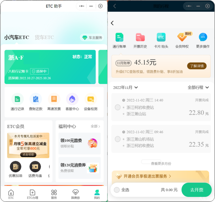 第三方ETC:因为高速的承建方不同路段都不同,因此实际的开票会根据承建路段不同进行开票,好在就是开票功能便利,电子发票下载简单,因此多开几张也不是什么太大的问题。