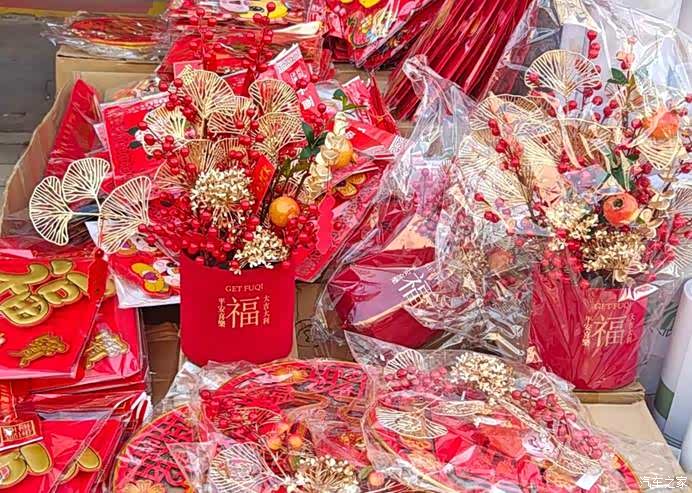 到处都是卖过年需要用到的东西,看着很喜庆。