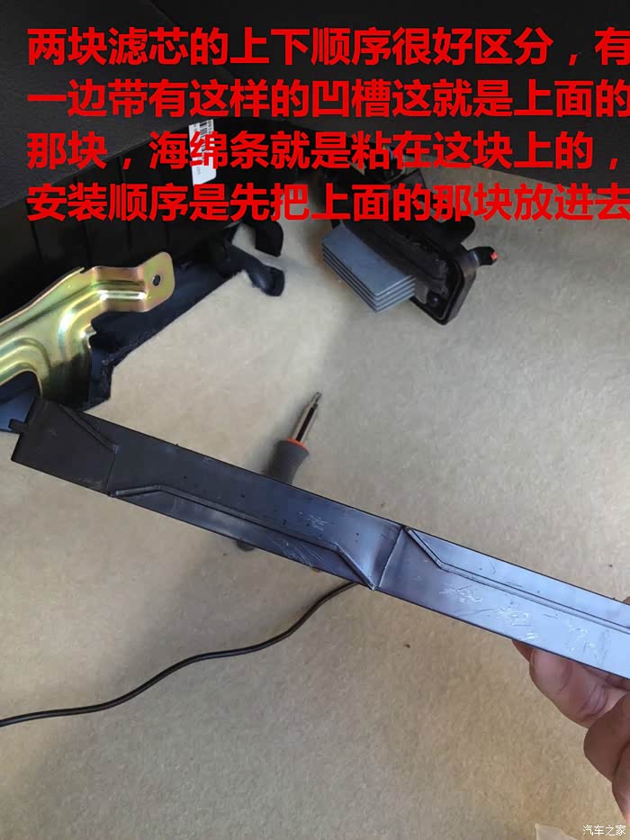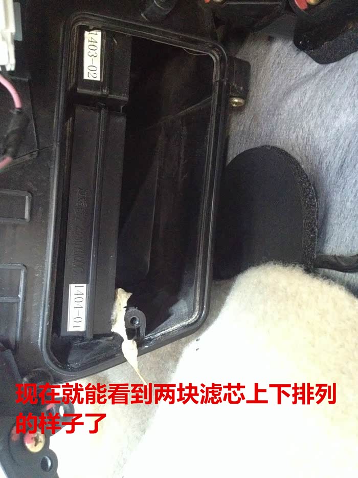 好了,空气滤芯更换完毕,很简单,大家应该都会做了,下面讲解更换空调滤芯,会比更换空气滤芯复杂一些。