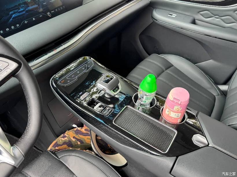 出发前饮料备好了,一路过去要2个小时,挺热的天补水不能少。我和老婆的遮阳帽就放在中控台下,镂空的设计还是挺实用的。