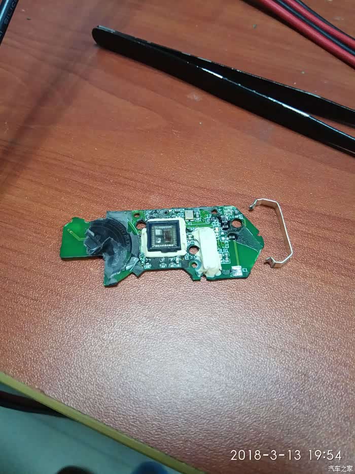 左边的是天线,撬开之前要先把锡焊掉。第一次拆没有经验,铜皮扯掉一块。