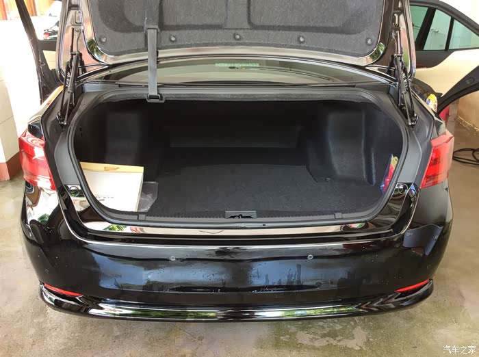 后备箱的开启角度很大,取放行李都很方便。但是后尾箱门关的时候需要比较用力,对于一些女性车主来说,如果有一个电动尾箱,会更显人性化。后尾箱整体来说空间很大,很平整。