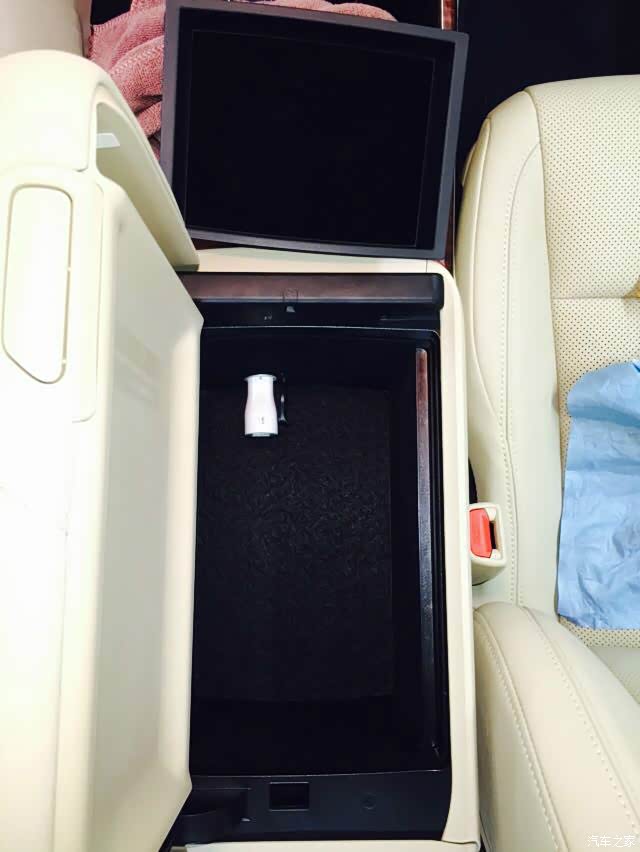 点烟器接口在扶手箱里面。皇冠车子这点有些不好。就只有一个接口。装了USB充电器,那么行车记录仪就不懂接哪里去了。。囧。