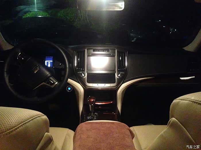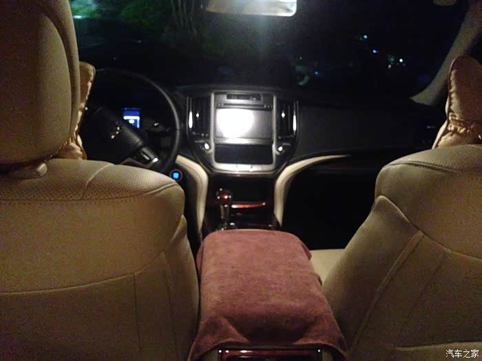 夜间的中控台,米色内饰的有点体现在这里了。比黑色内饰看来要更温馨居家,给人感觉相对柔和一点。我比较喜欢这种调调。对于中控我还有一个小遗憾,摆动式空调不能选装,真是遗憾啊。
