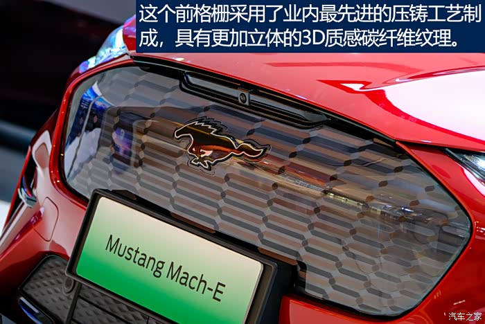 在中国版的车型上还有个小的细节,那就是中国版全系的Mustang Mach-E都使用了北美GT车型独有的前格栅设计。
