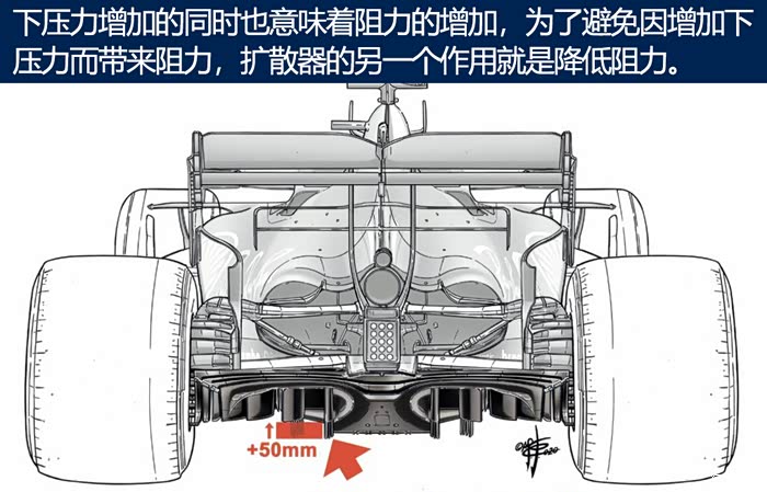 如果汽车要开的快,就要面对升力,这是汽车结构所不能避免的,如何减少汽车被车底升力所抬升呢?扩散器就应运而生了。