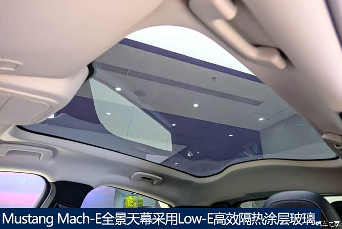 而Mustang Mach-E的全景天幕采用了Low-E高效隔热涂层玻璃,太阳能阻隔率80%+,紫外线阻隔率99%+,那这个Low-E高效隔热涂层玻璃是个什么东西呢?